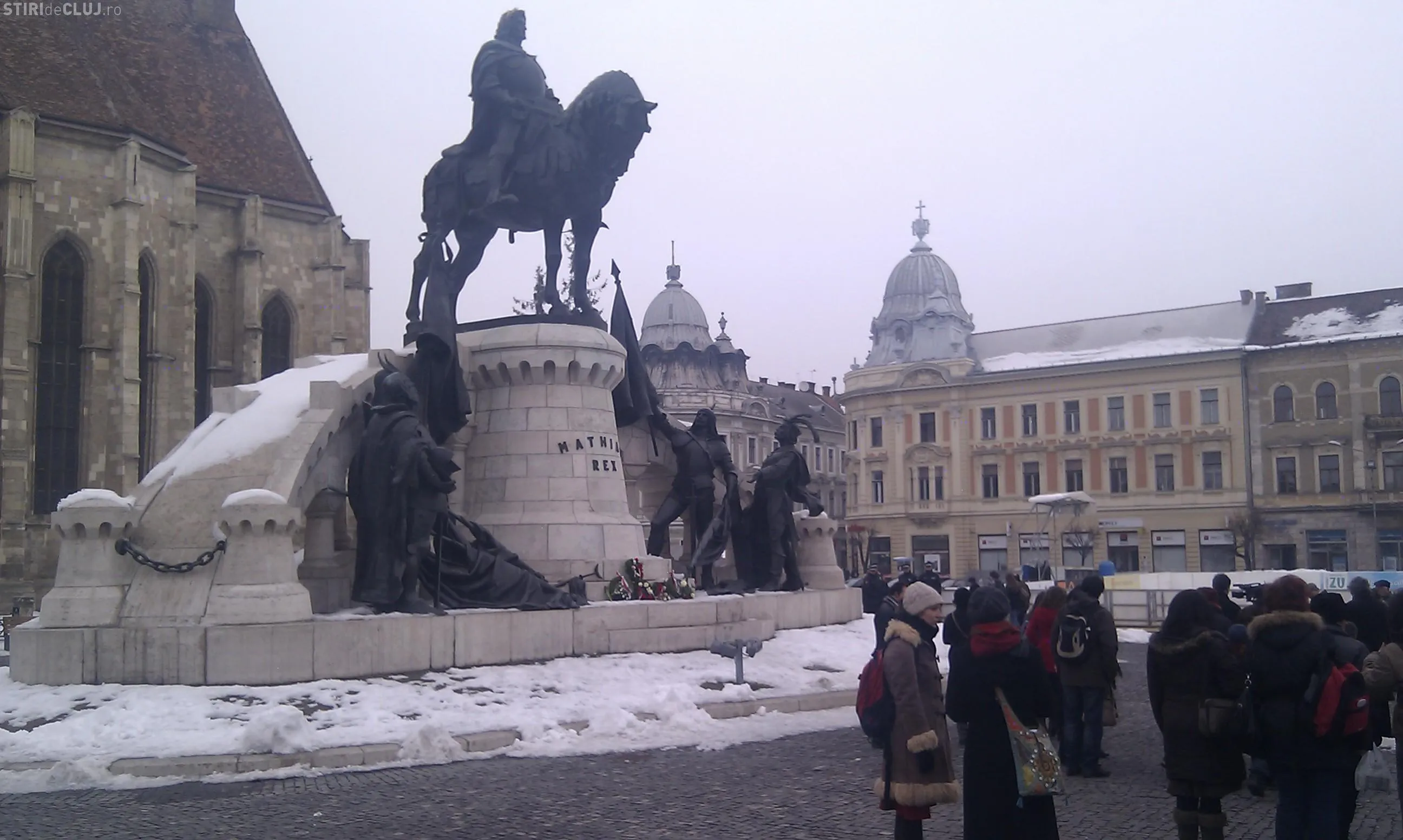 Circa 150 de etnici maghiari s-au adunat joi, 23 februarie, in fata grupului statuar Matei Corvin pentru a aniversa 569 de ani de la nasterea fostului rege al Ungariei.