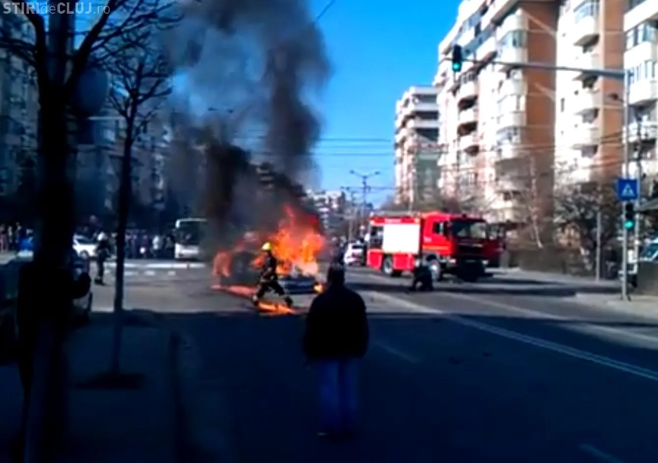 Incendiu de maşină pe Calea Mănăştur, în staţia de autobuz - FOTO
