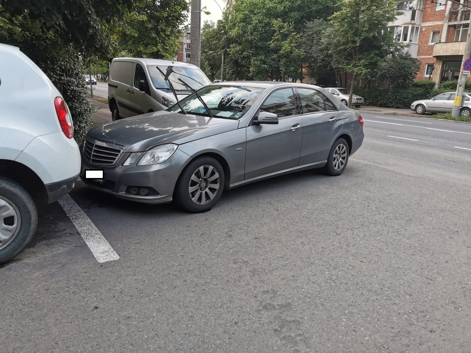 Șoferul unui Mercedes plin cu icoane în bord și-a parcat autoturismul fără jenă, blocând complet trotuarul din Gheorgheni.