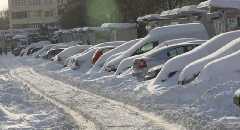 În imagine, o mașină acoperită de zăpadă căzută în ultimele zile avea un mesaj simplu, dar inedit, scris chiar deasupra autovehiculului: „Neața”.