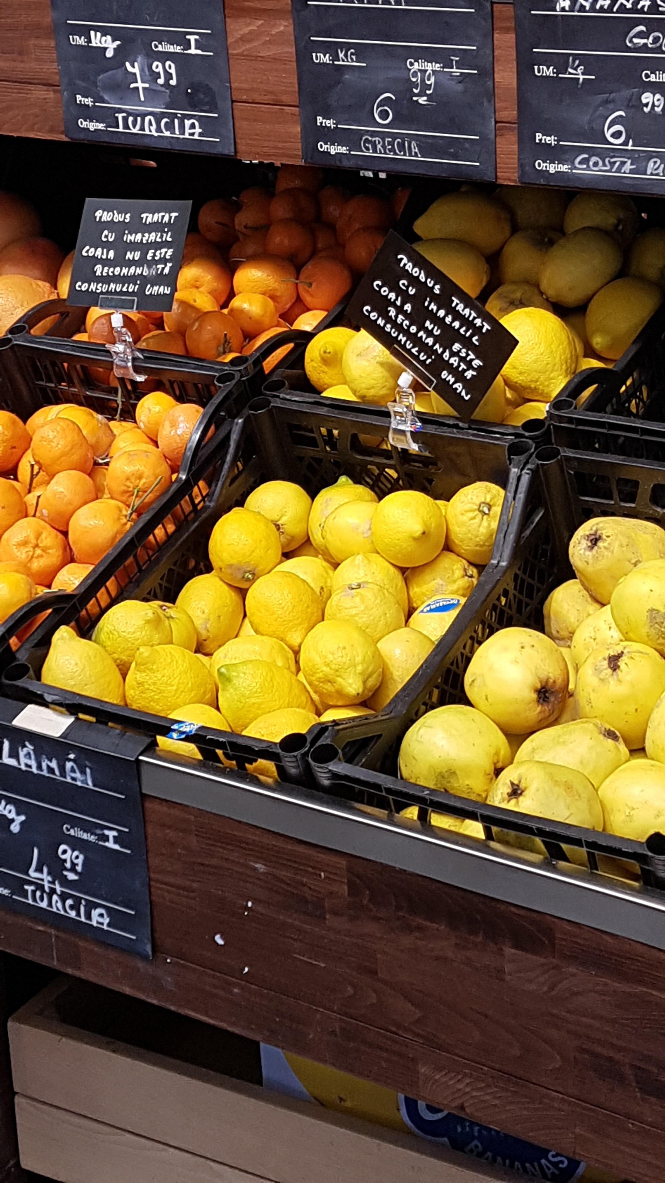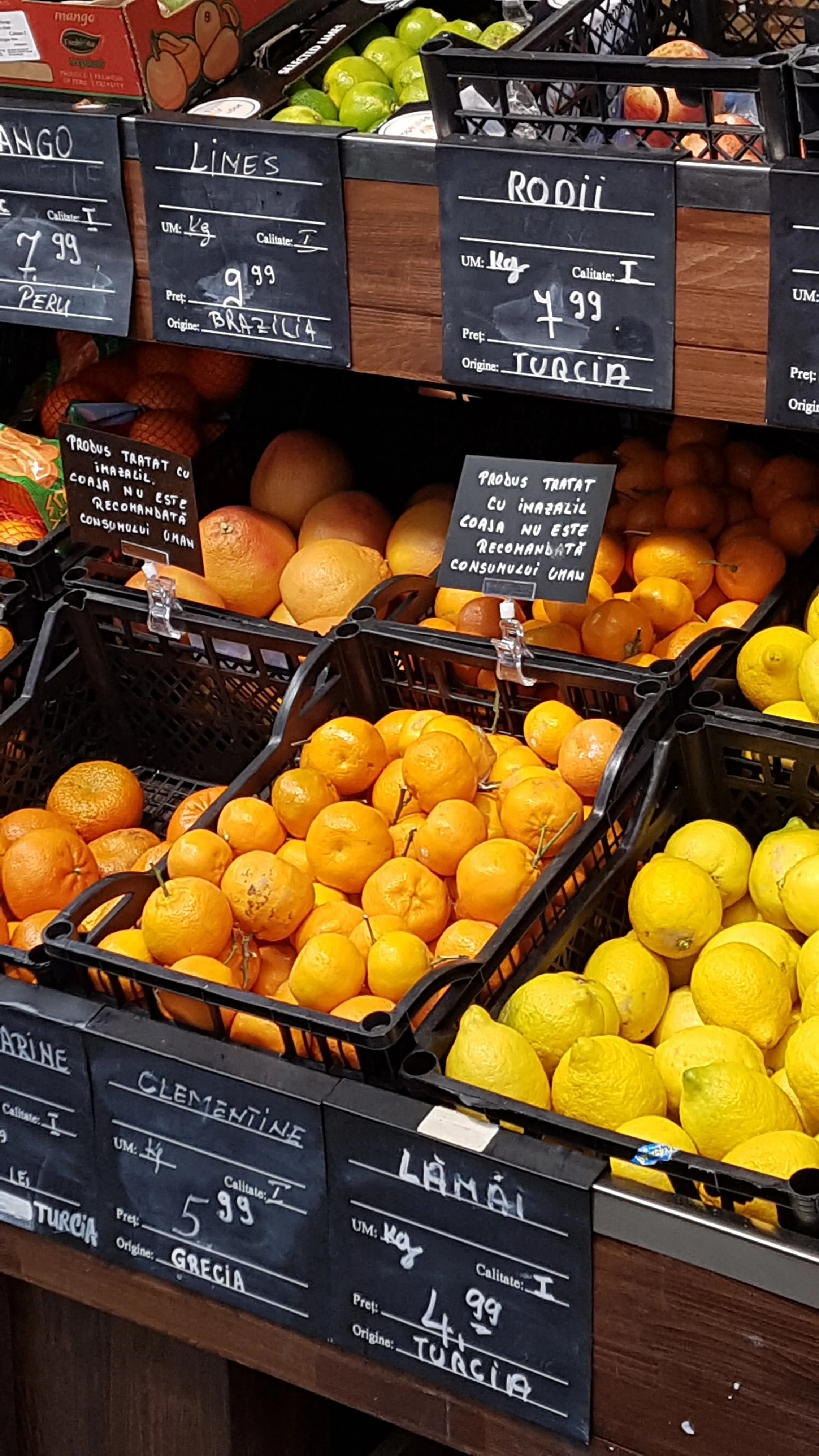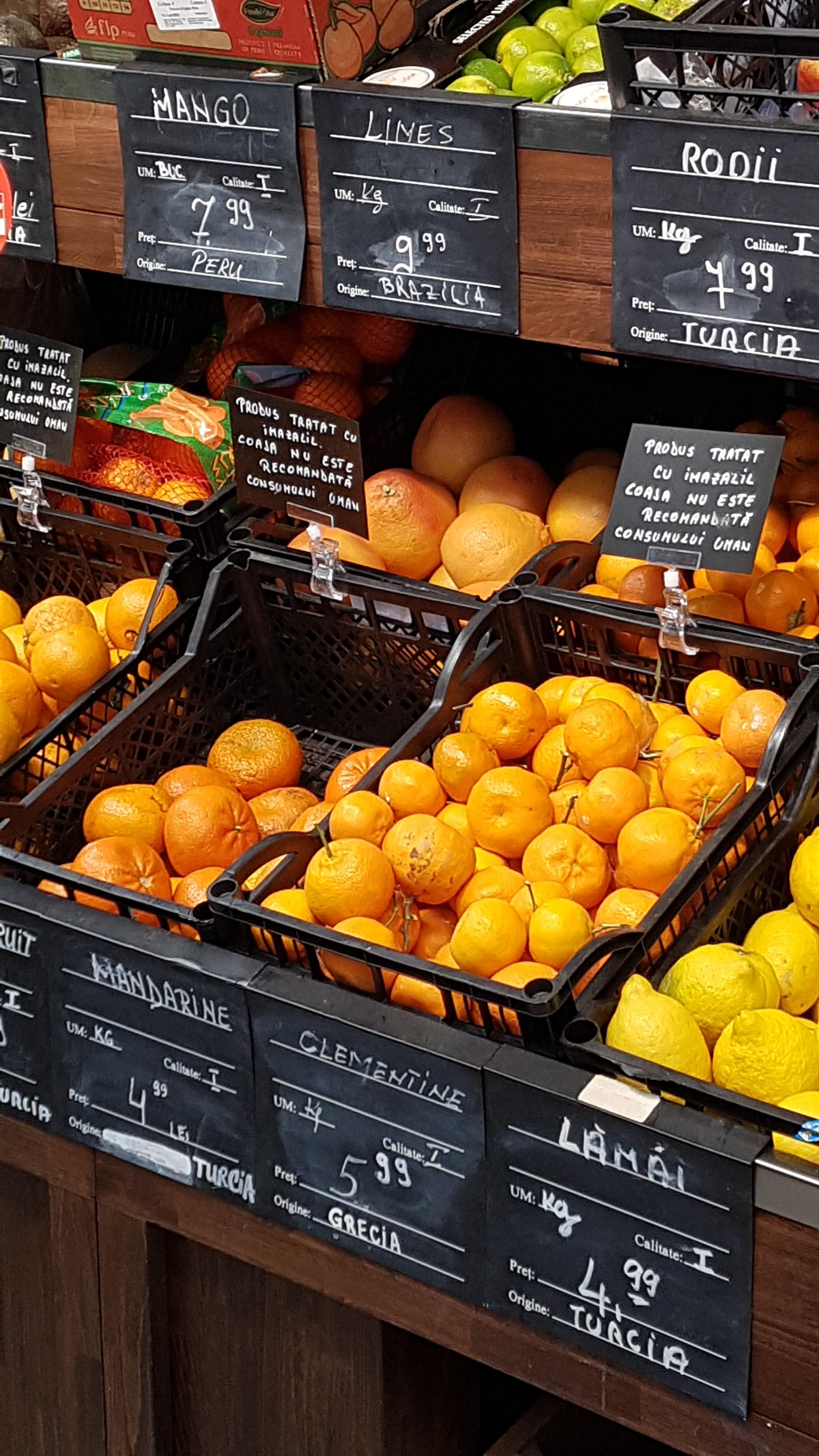 Citricele dintr-un magazin Mega Image sunt însoțite de mesajul ”Coaja nu este recomandată consumului uman”, pentru că produsele au fost tratate cu Imazalil.