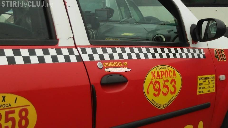 Un taximetrist clujean a lipit pe mașină, în mai multe locuri, un mesaj destinat clienților care dau ciubuc.