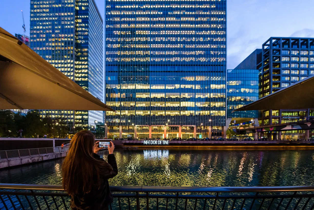 Câteva zeci de persoane au participat joi seara, 7 noiembrie, în zona financiară a Londrei, Canary Wharf, la inaugurarea instalației de lumină Mi-e Dor de Tine (produsă de Asociația Daisler) printr-un demers unic de asociere între festivalul Lights ON Romania și festivalul britanic Canary Wharf Winter Lights.