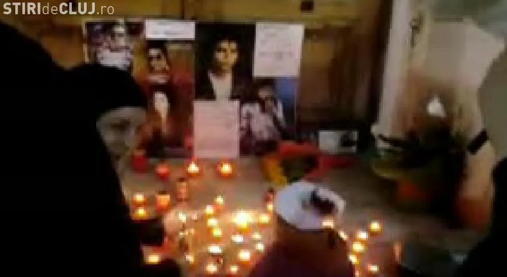 Fotografii cu Michael Jackson au fost lipite pe gardul care imprejmuieste statuia lui Matei Corvin, iar tot acolo au fost aprinse si lumanari in forma de inima.