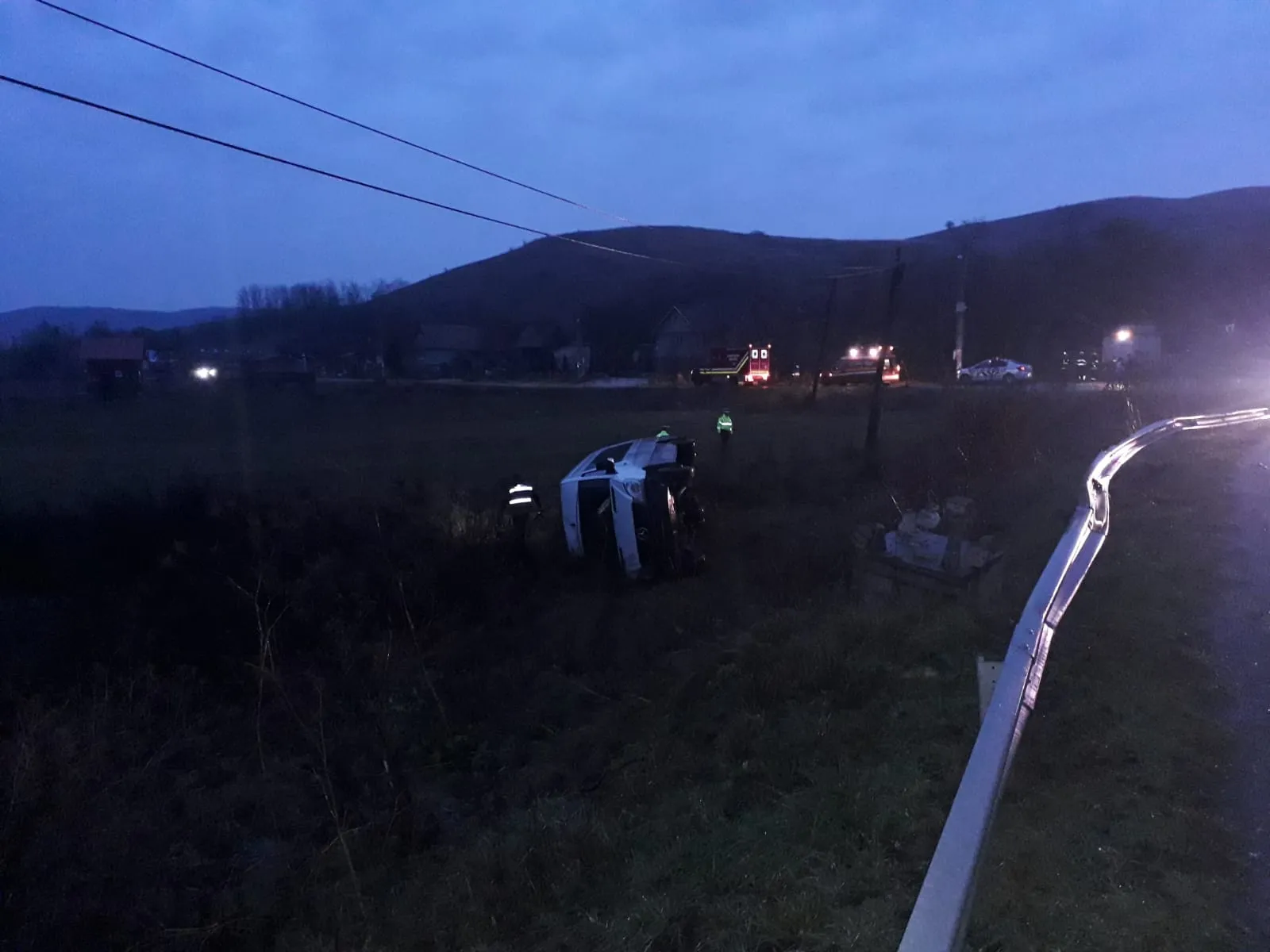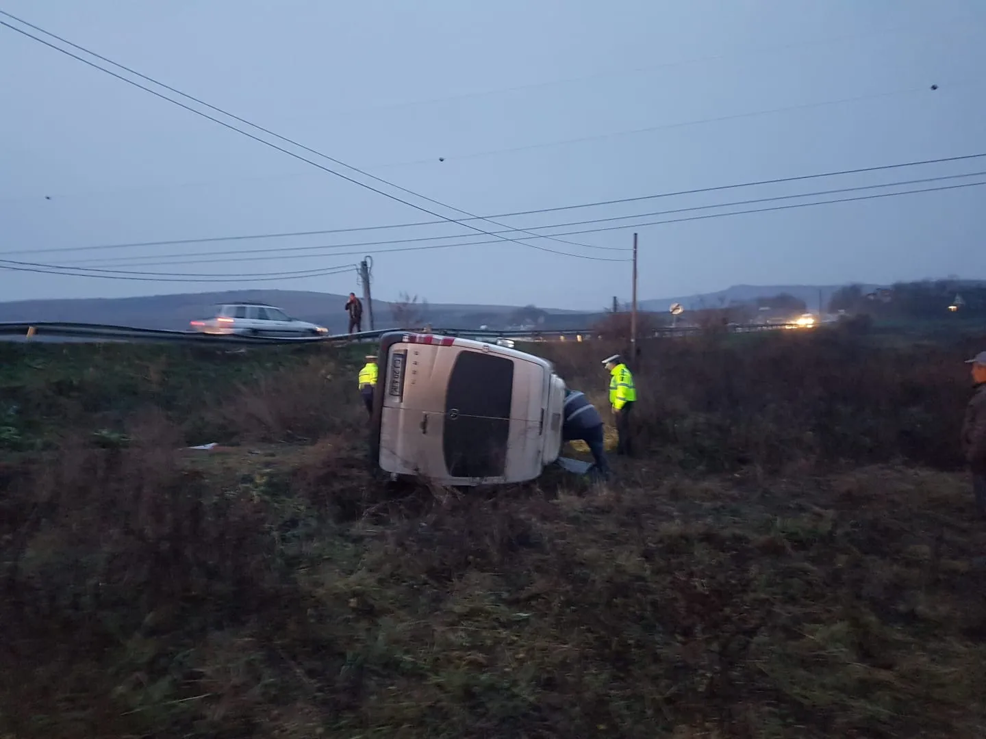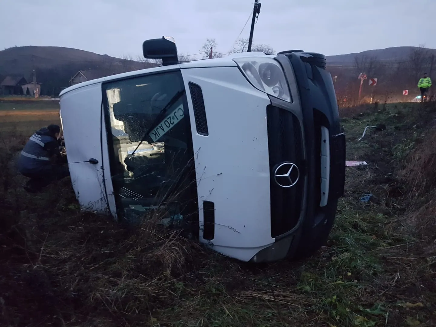 Microbuz cu 16 persoane răsturnat pe un drum din Cluj! Opt persoane au fost rănite FOTO