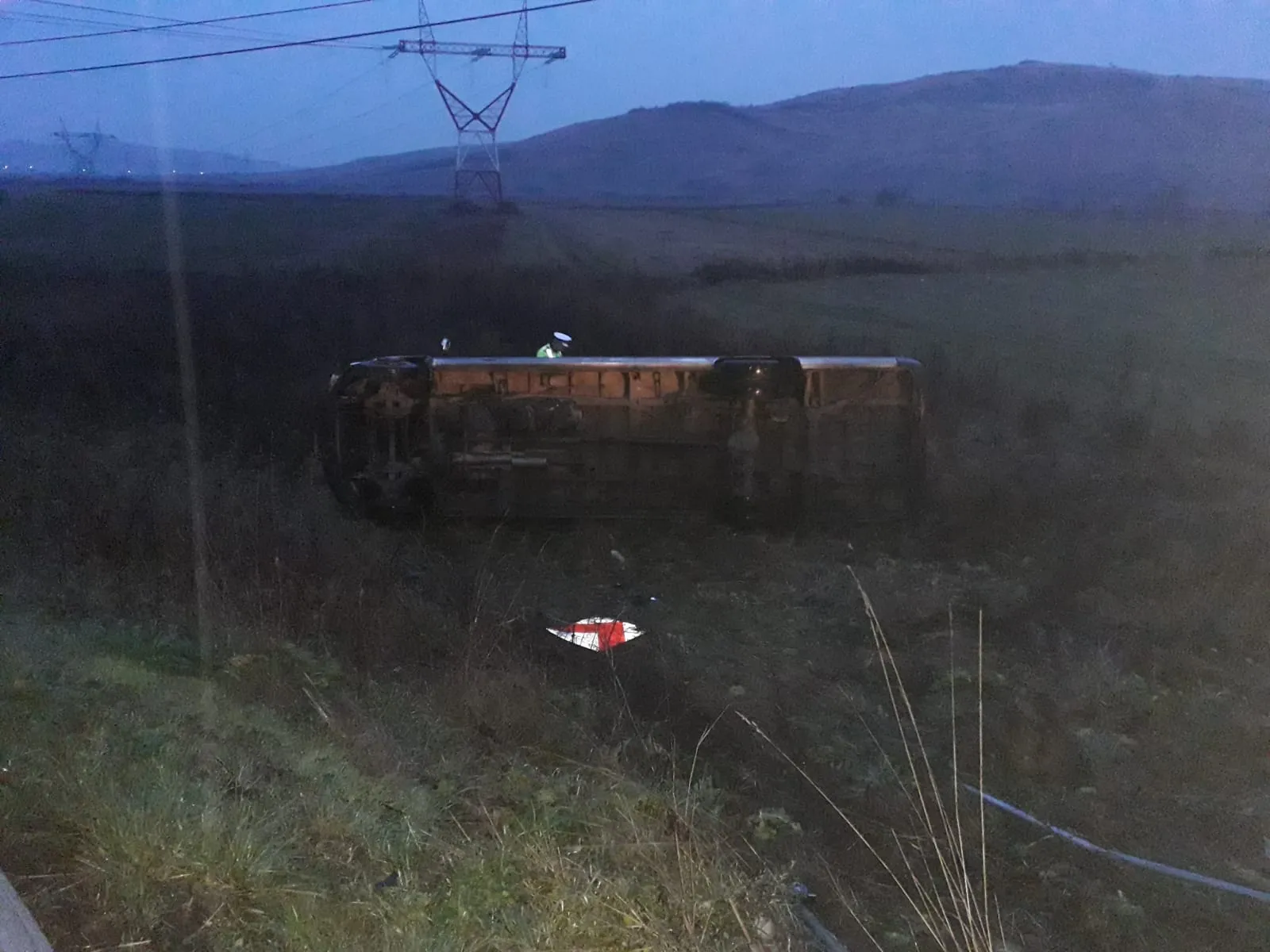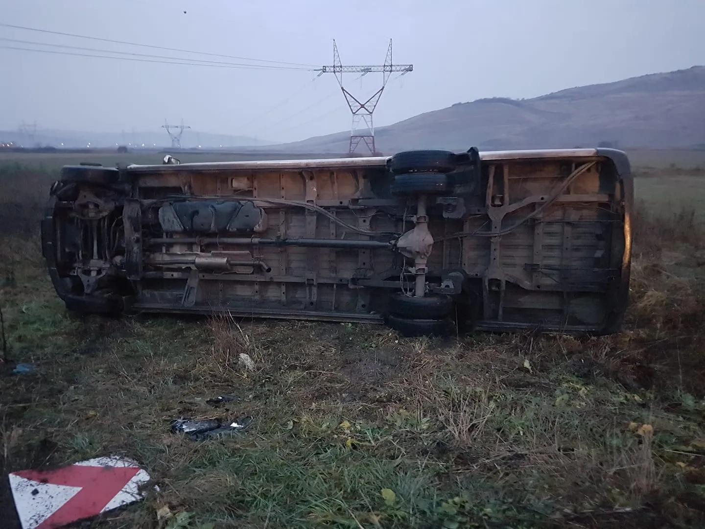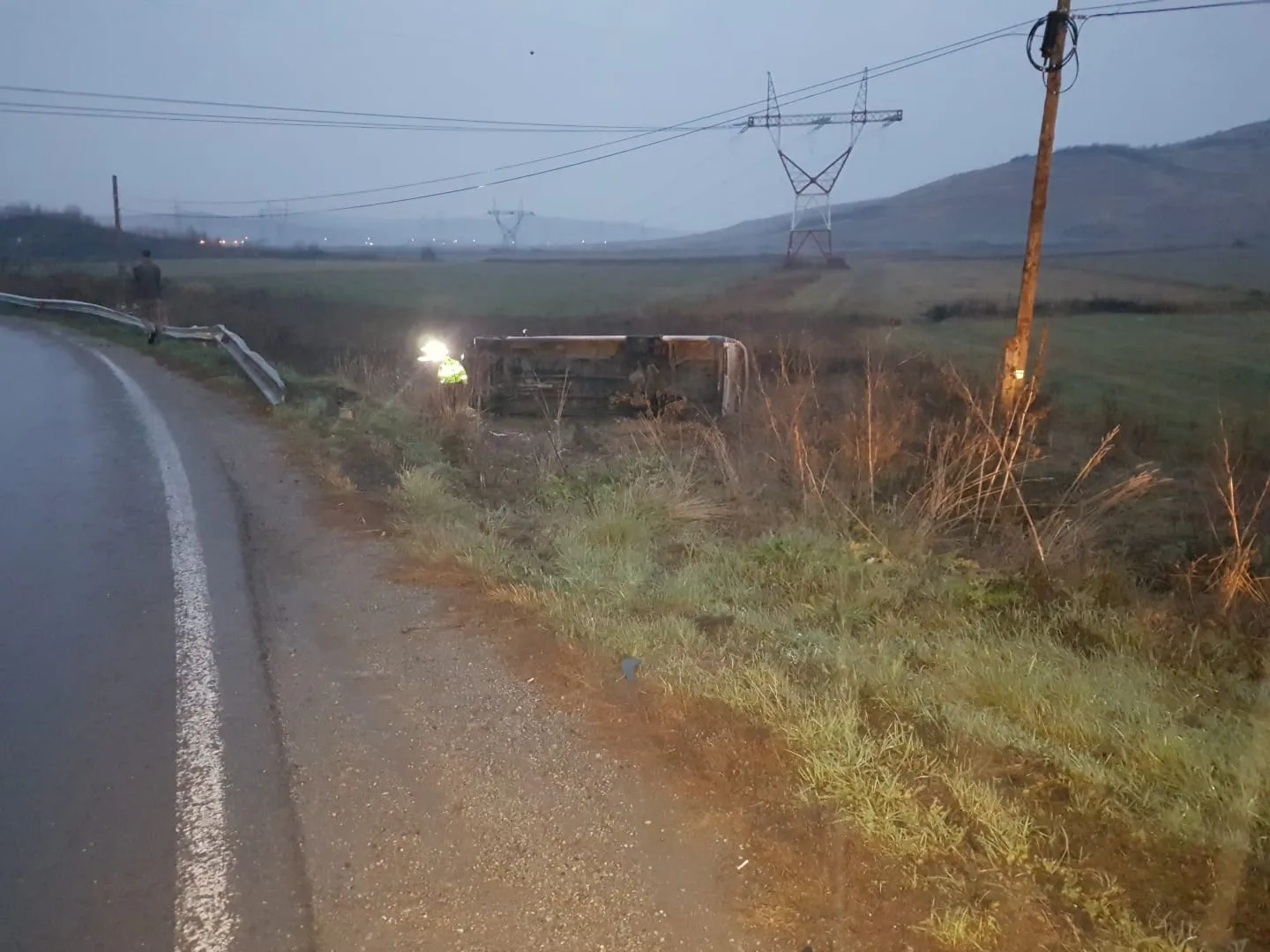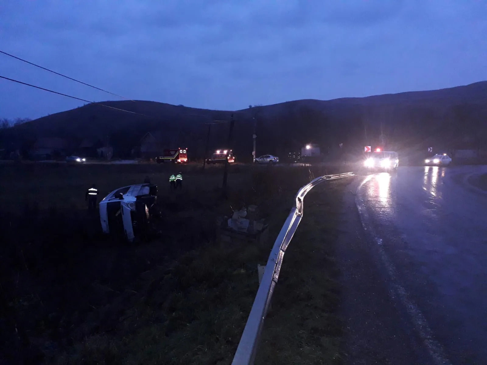 Microbuz cu 16 persoane răsturnat pe un drum din Cluj! Opt persoane au fost rănite FOTO