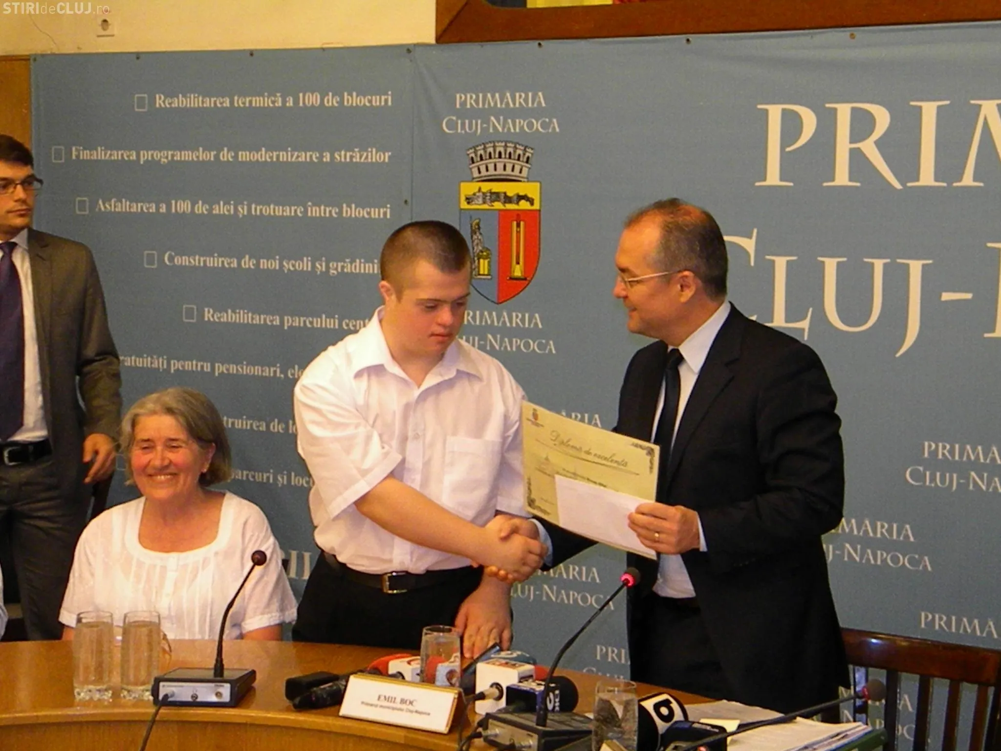 Mihai Mocean, elevul cu Sindrom Down care a luat BAC ul, a fost premiat cu 1000 de lei de Primăria Cluj-Napoca pentru performanța obținută la BAC.