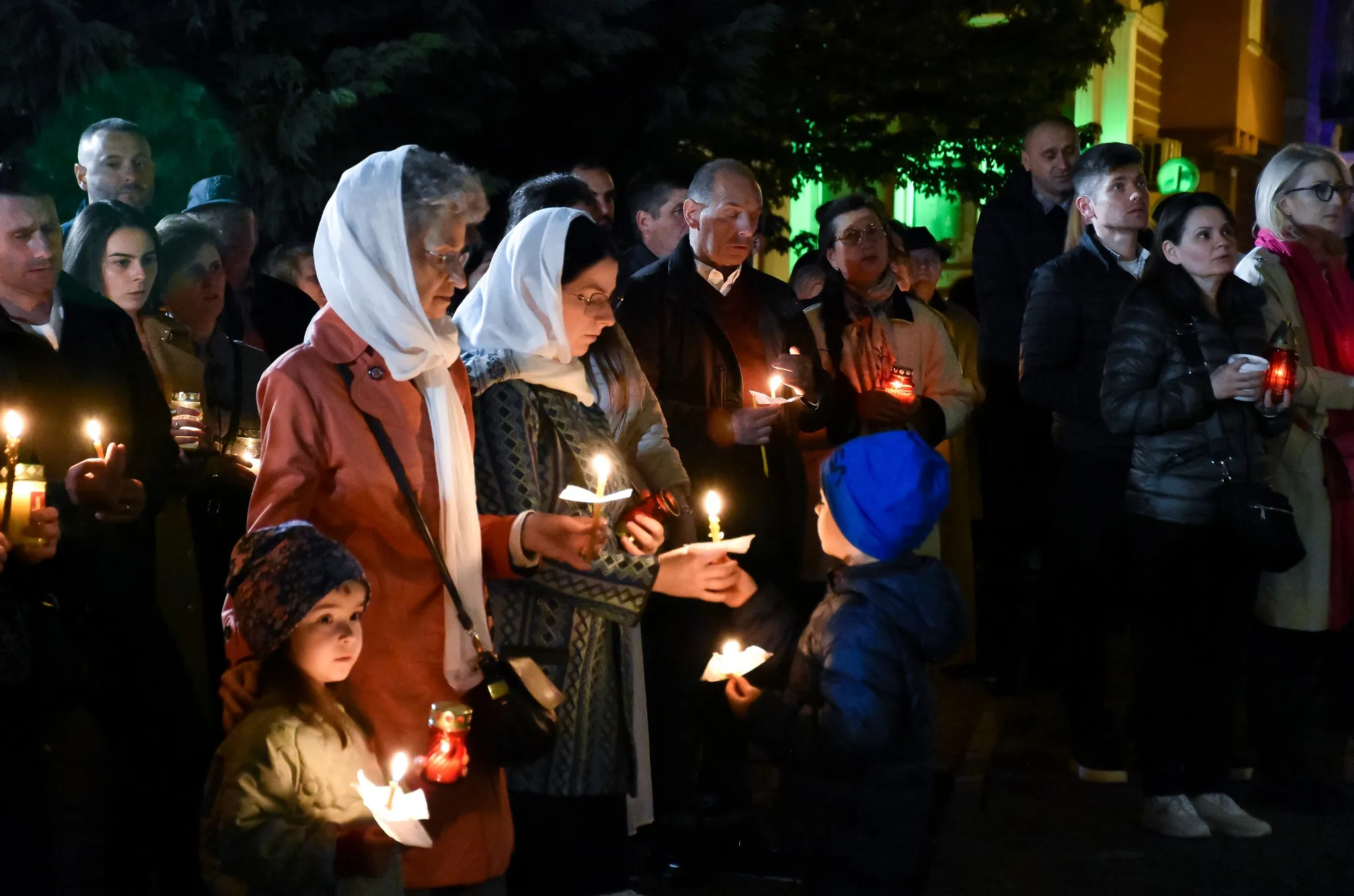 La slujbă au participat mii de credincioși clujeni, Părintele Mitropolit Andrei oferindu-le Lumina Sfântă de la Ierusalim, cu binecunoscutele cuvinte-îndemn: „Veniţi de luaţi Lumină!”.