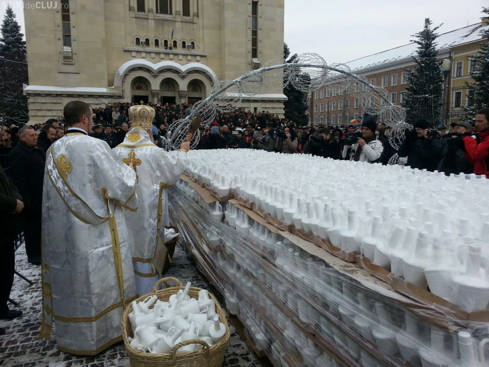 Mii de clujeni au luat sticle cu apă sfințită de Bobotează - FOTO