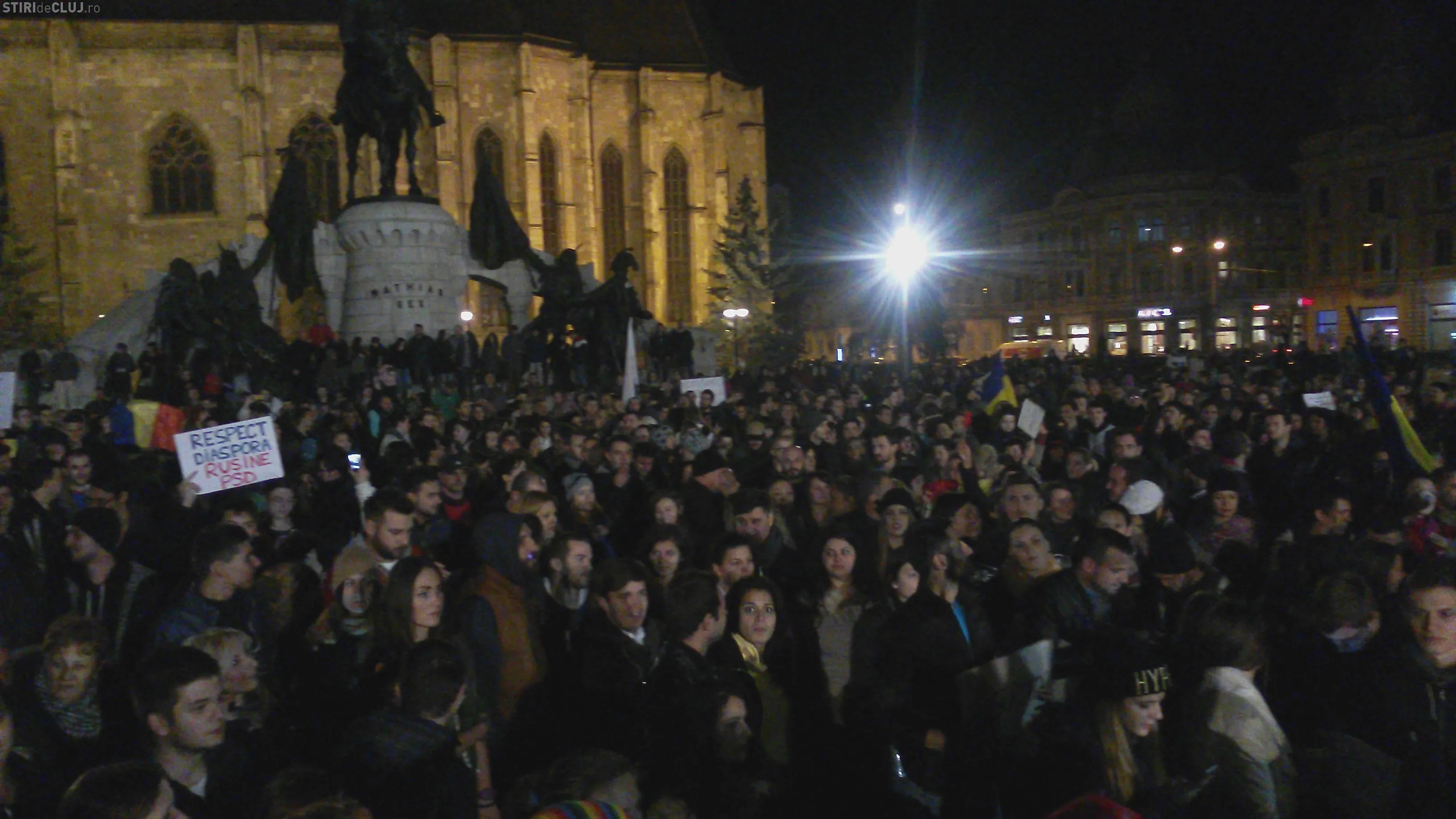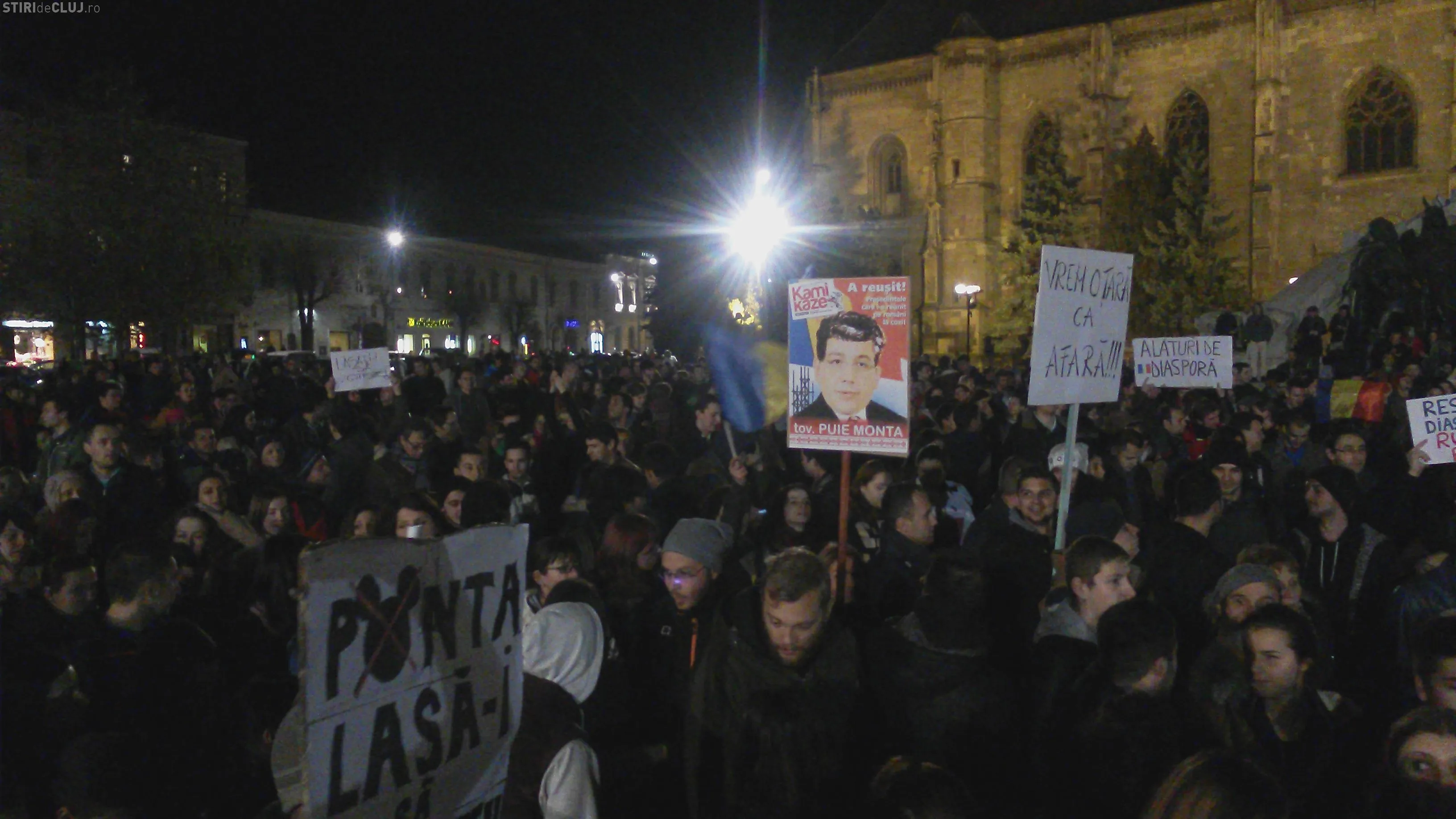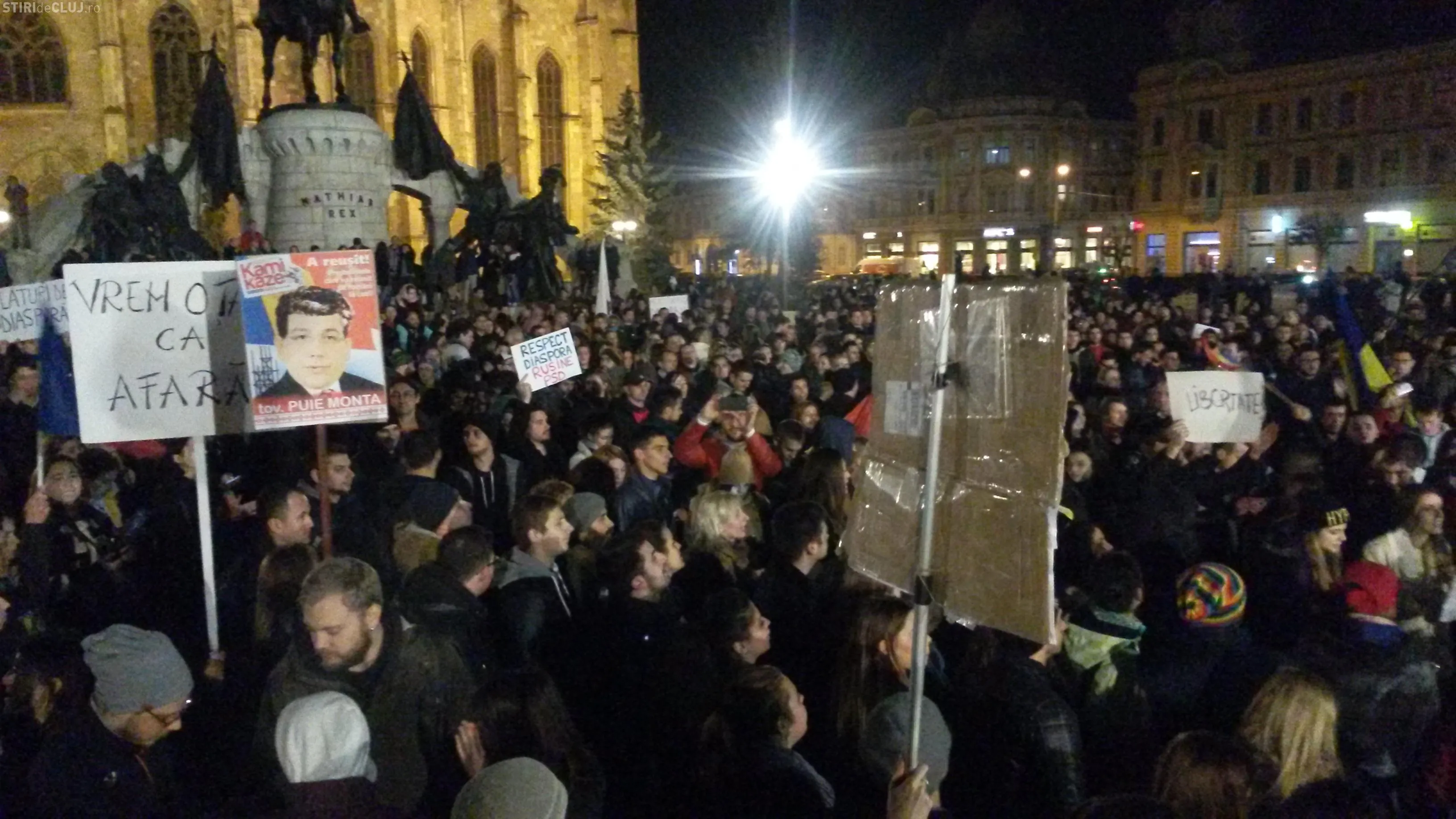 5000 de clujeni în Piața Unirii. Cer demisia Guvernului. B-dul 21 decembrie, blocat - VIDEO