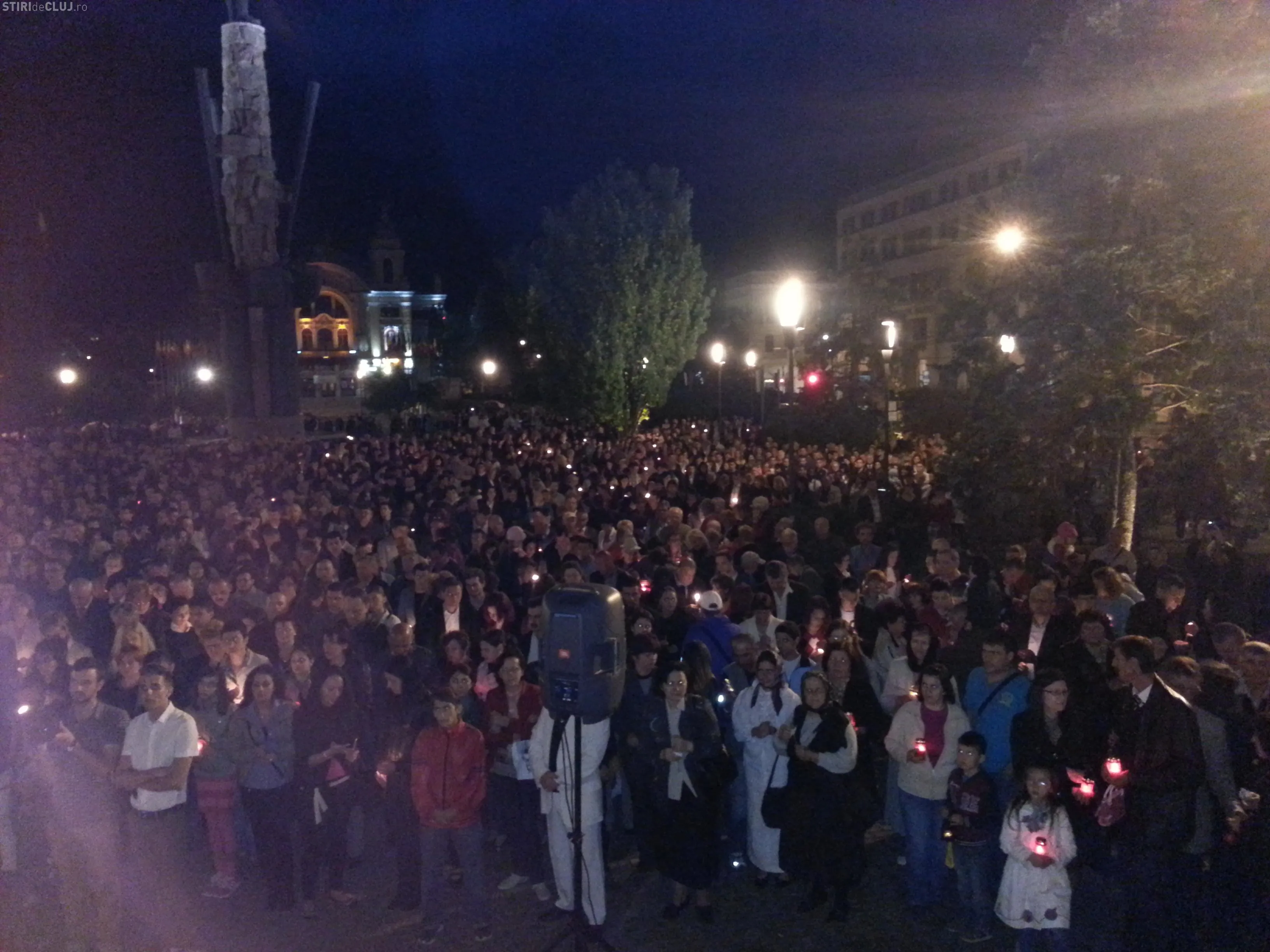 Credincioşii s-au strâns în Piaţă de la ora 23.00, iar după miezul nopţii au asistat la ceremonialul de înconjurare a catedralei.