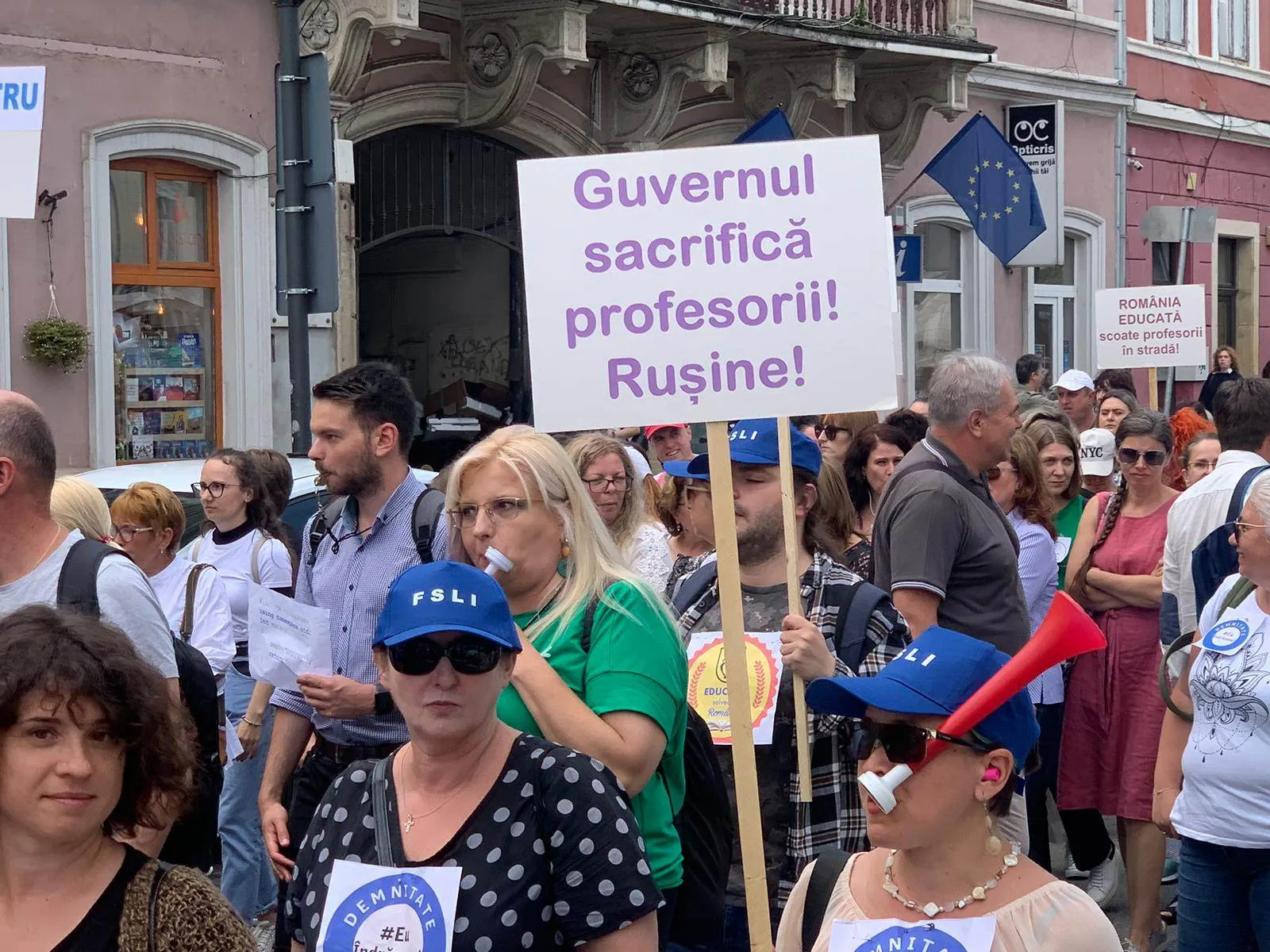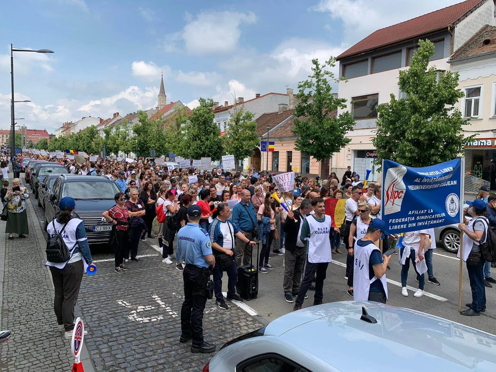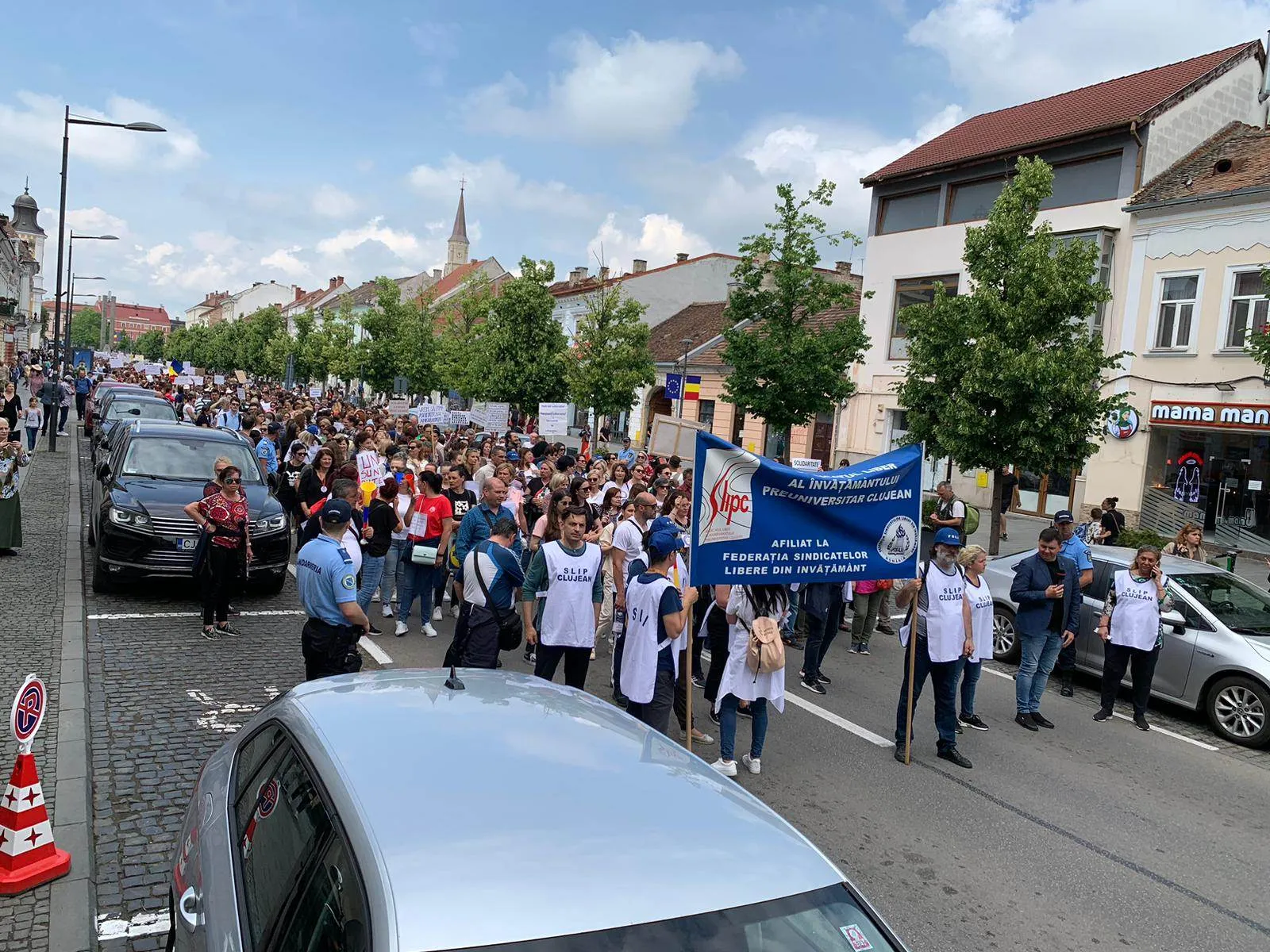 Greva în Educație continuă pentru a treia săptămână. Miii de profesori s-au adunat în Piața Unirii din Cluj-Napoca de unde au plecat într-un marș de protest pe Bulevardul Eroilor.
