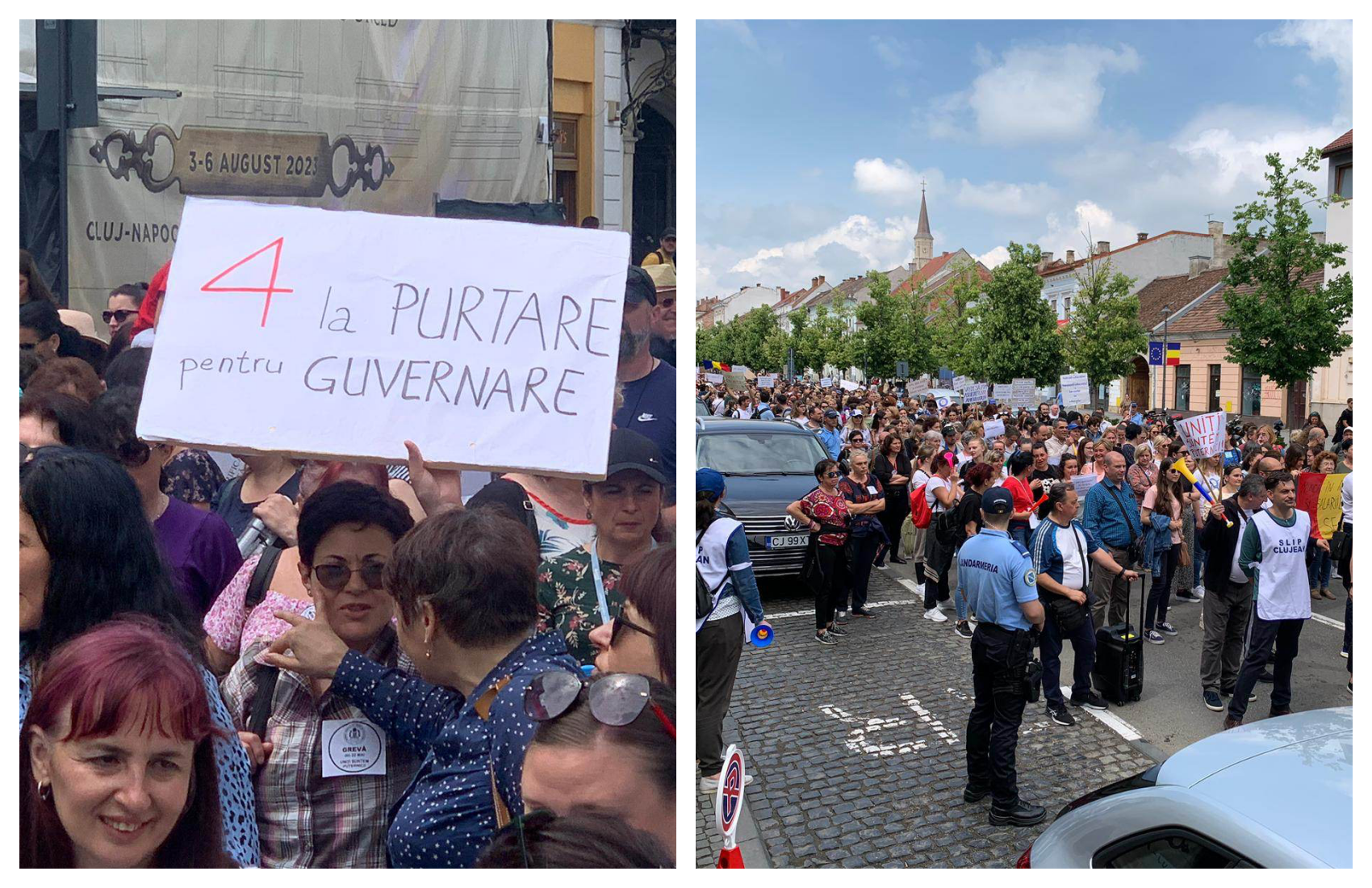 Din primele date, aproximativ 3000 de protestatari, între care se află profesori, elevi și părinți s-au adunat astăzi în centrul Clujului pentru a spune un „nu” ferm tentativelor Guvernului de a-i sfida pe profesori și alți angajați din Educație.