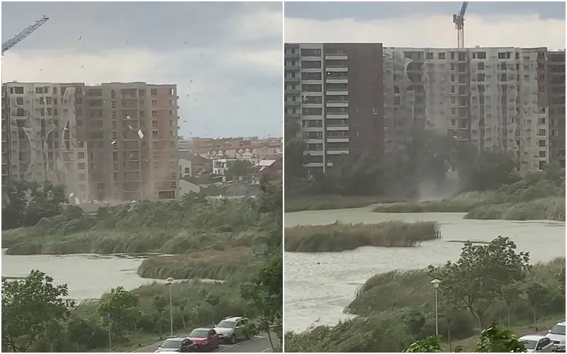 Între Lacuri, în Cluj-Napoca, s-a format chiar o mini-tornadă, care a ridicat la 20 de metri materialele de construcții.