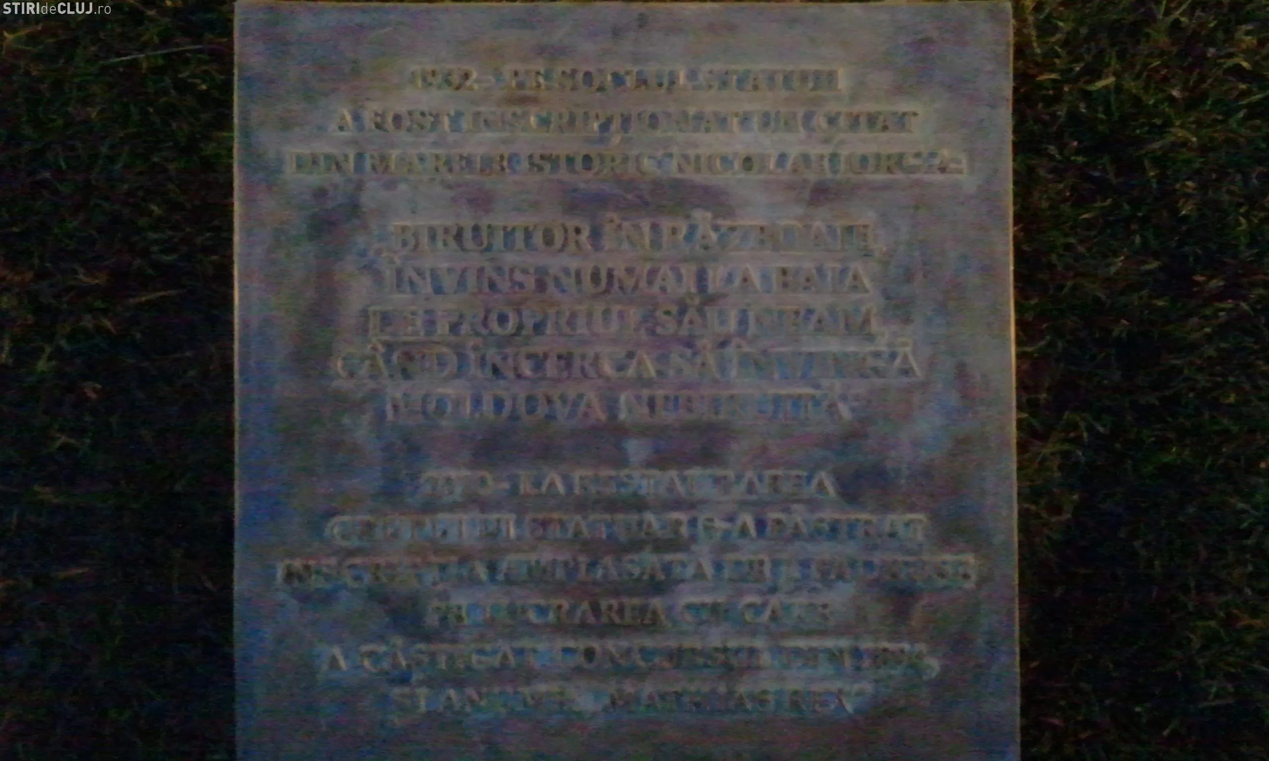 Placuta lui Nicolae Iorga, reamplasata pe statuia lui Matei Corvin pe ascuns