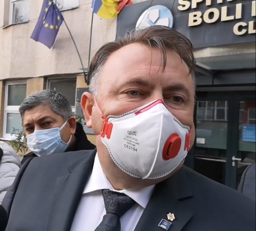 „Astăzi am venit și la Cluj, am fost și la Târgu Mureș, pentru evaluarea spitalelor. Voi merge acum la Brașov și Sibiu pentru a evalua capacitatea de răspuns odată cu creșterea numărului de cazuri a județelor din Transilvania, și pentru a evalua posibilitatea de extindere a paturilor de terapie intensivă. Aici, la Spitalul de Boli Infecțioase avem 363 de paturi și 52 de paturi la ATI. La Clujana avem 100 de paturi pentru simptomatologie medie și 17 de terapie intensivă, în acest moment fiind operaționalizate doar 6. Revin mereu cu plăcere la Spitalul de Boli Infecțioase. Ei sunt eroii, cei din linia I, ei au intrat primii și vor ieși ultimii din această luptă. Am avut o discuție cu personalul medical despre reevaluare la tot ce înseamnă tratament și protocoale, necesar de personal, necesar de medicamente, cât și o altă abordare pe acest moment pandemic”, a declarat ministrul Sănătății.