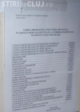 In sectiunea foto puteti gasi imagini cu tabelul taxelor percepute de catre Spitalul Clinic Judetean de Urgenta Cluj.