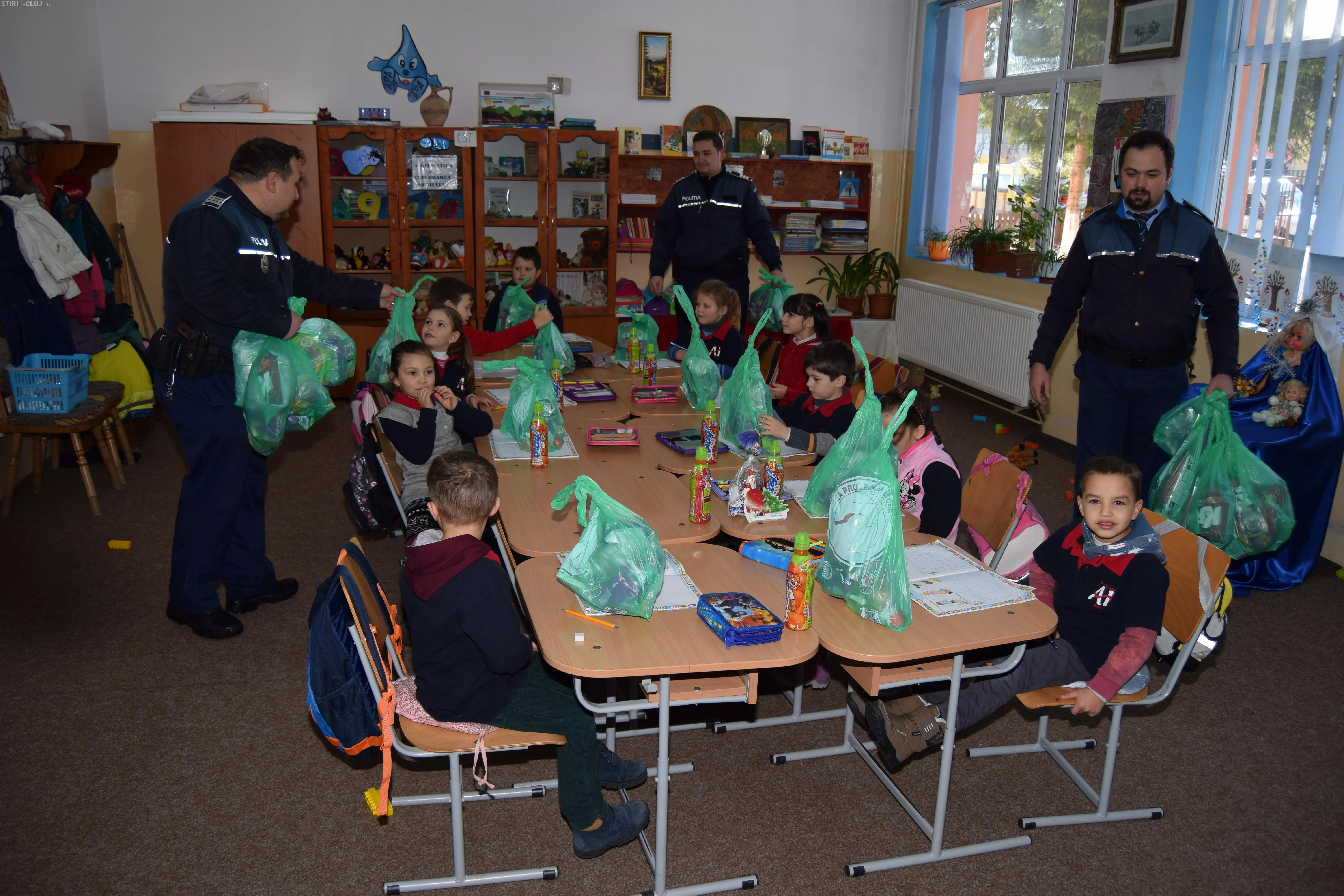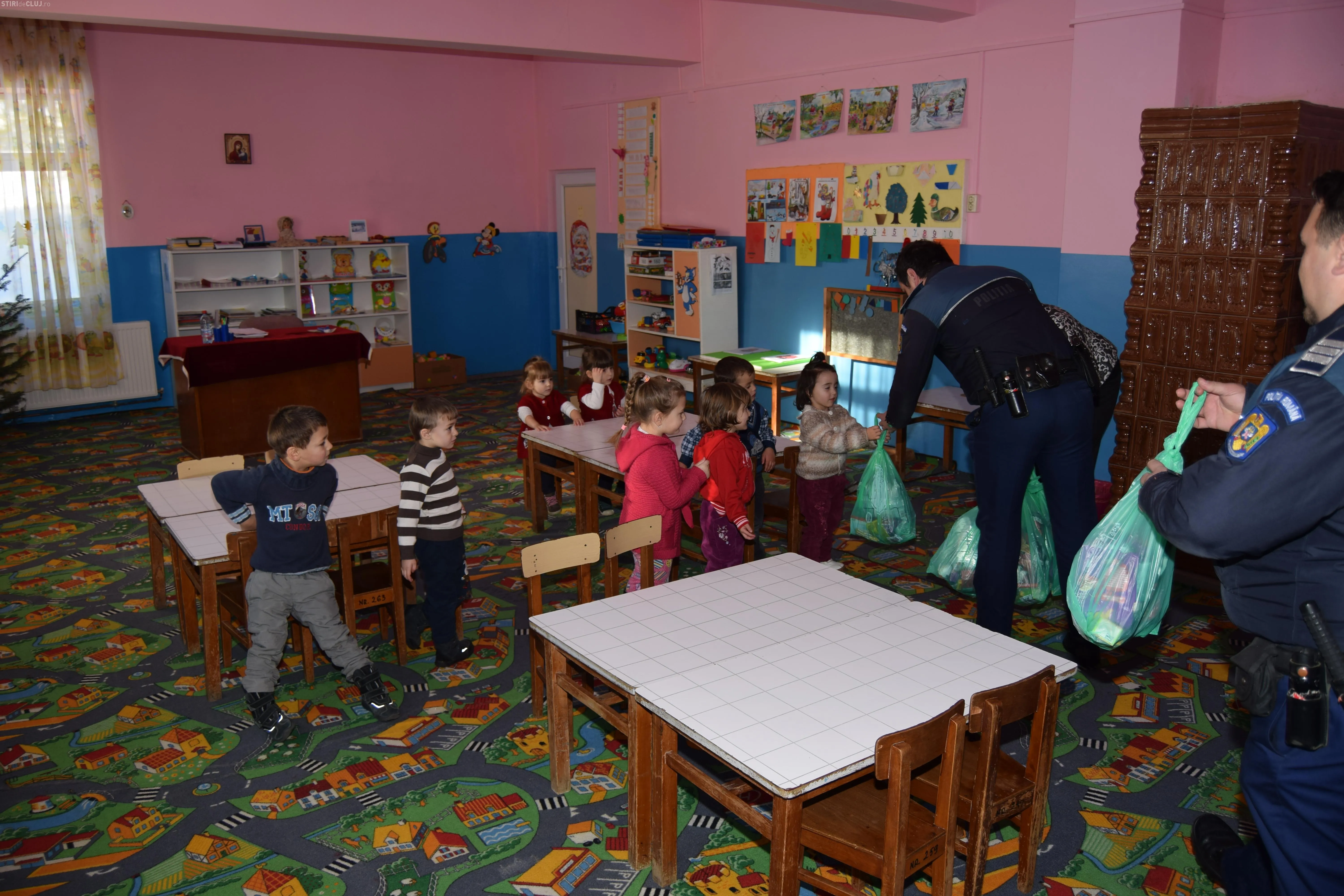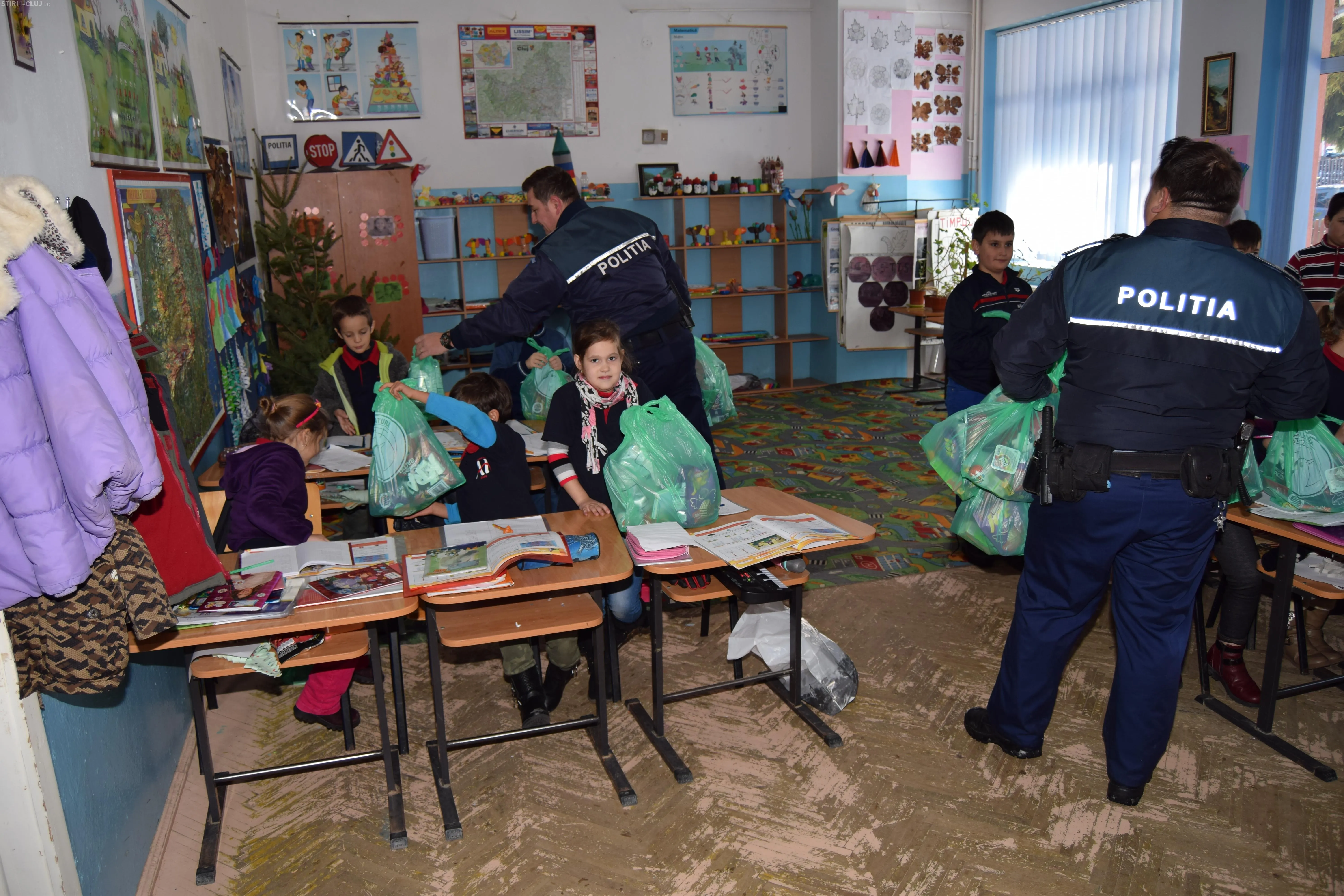 Au fost distribuite aproape 100 de cadouri, iar cei mici s-au bucurat de vizita polițiștilor și au promis că vor fi cuminți și în anul ce vine.