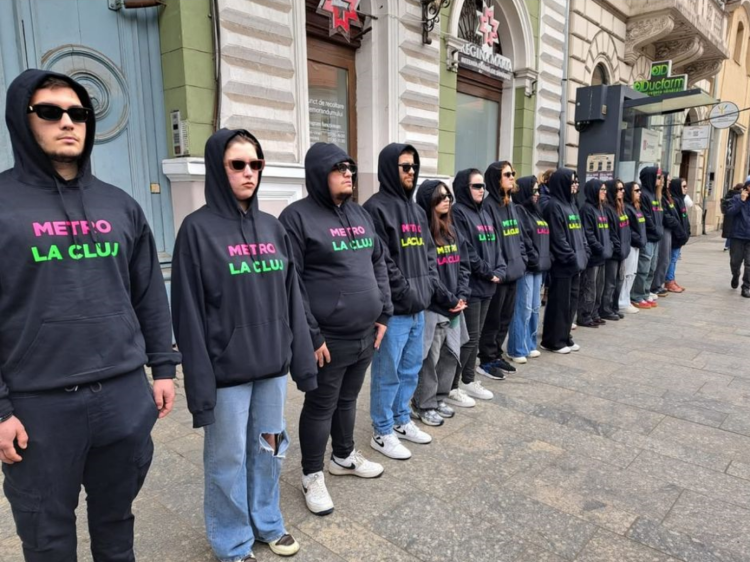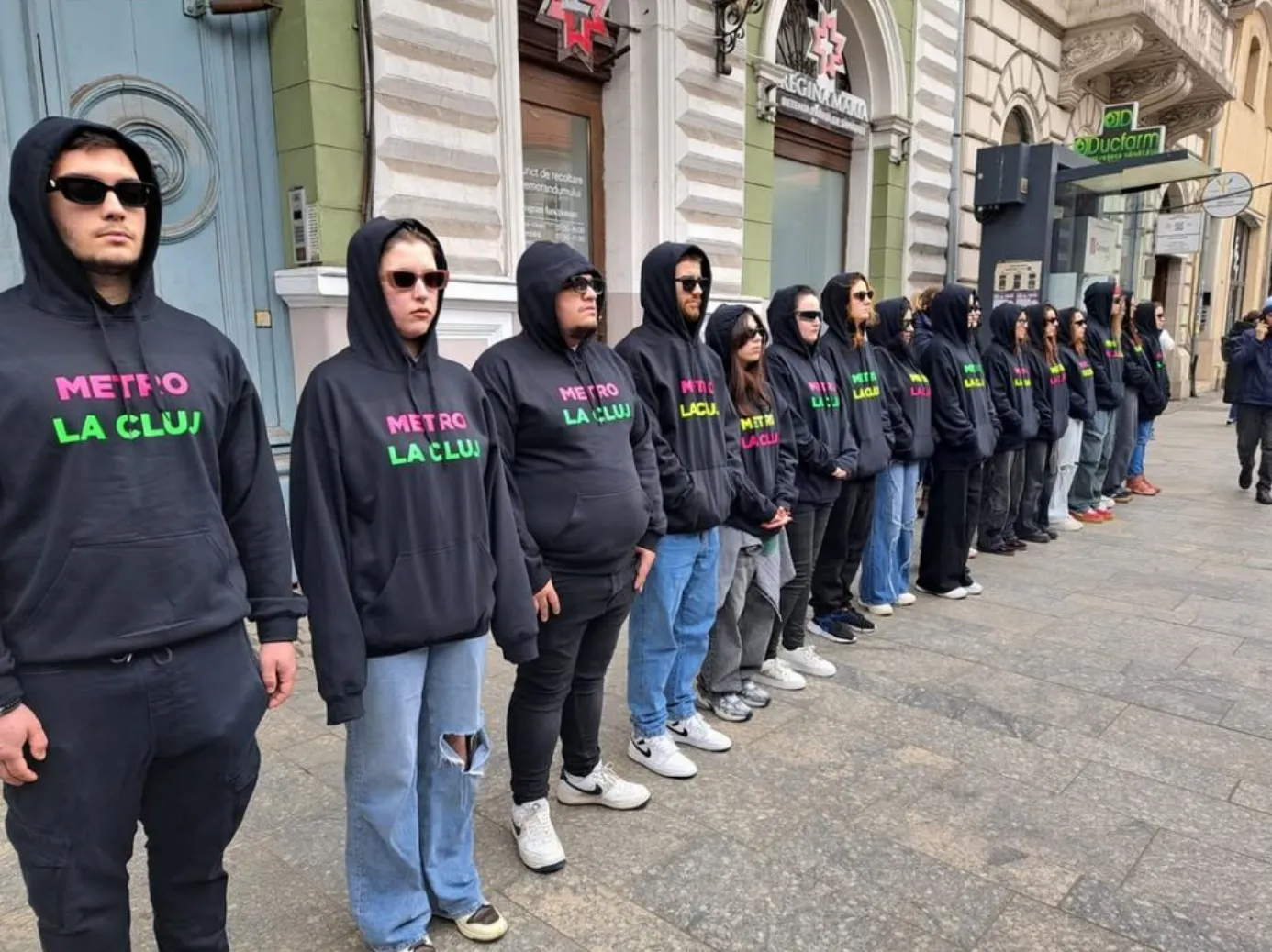 Mister total în Cluj! Zeci de tineri îmbrăcați în hanorace negre au apărut din senin: „Protest față de metrou, metro? Reclamă, conspirație sau ce e asta?”