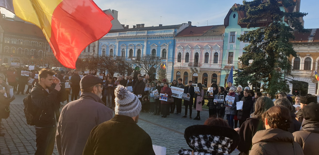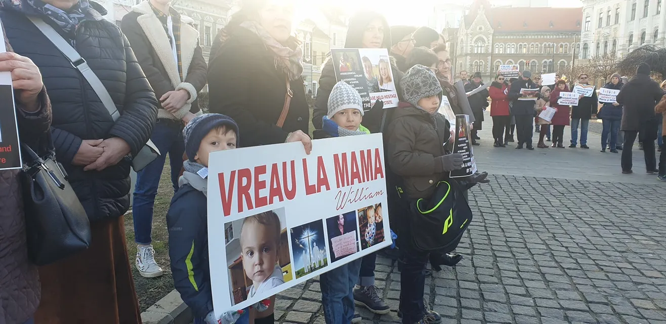 Miting de solidaritate la Cluj cu familia Smicală, ai cărei copii sunt ținuți cu forța în Finlanda - FOTO