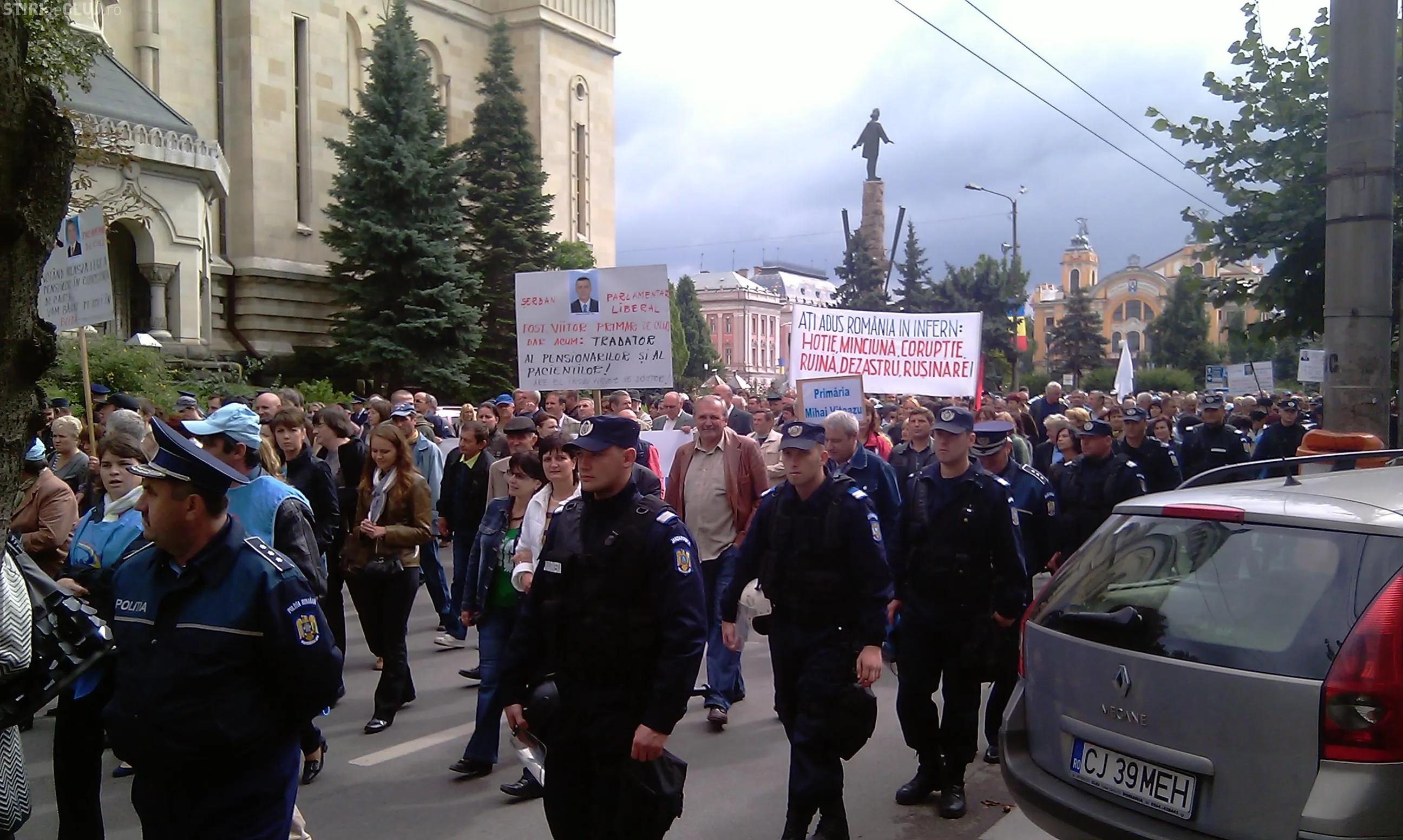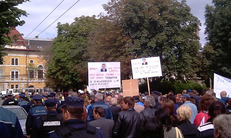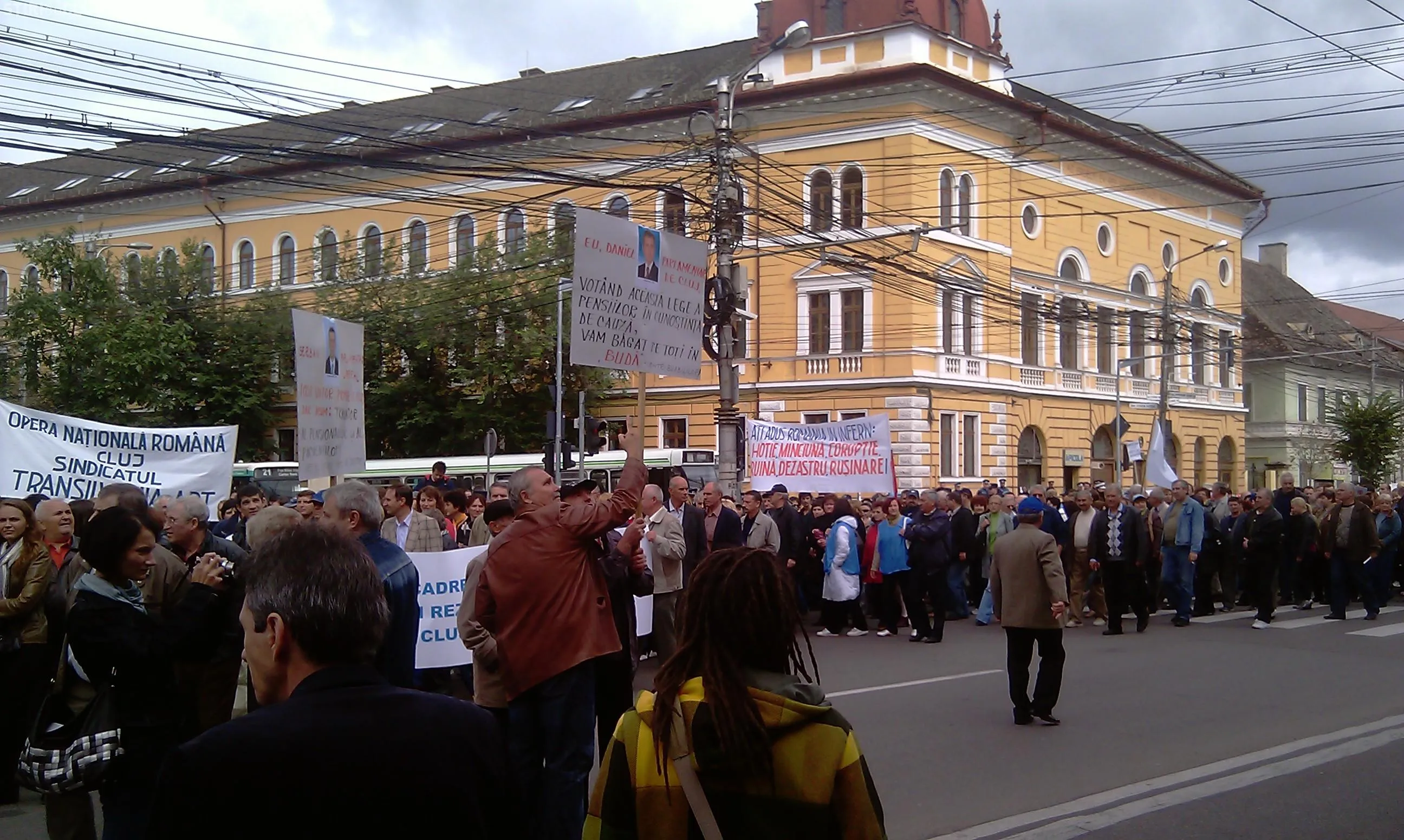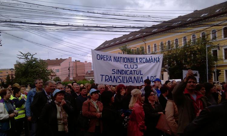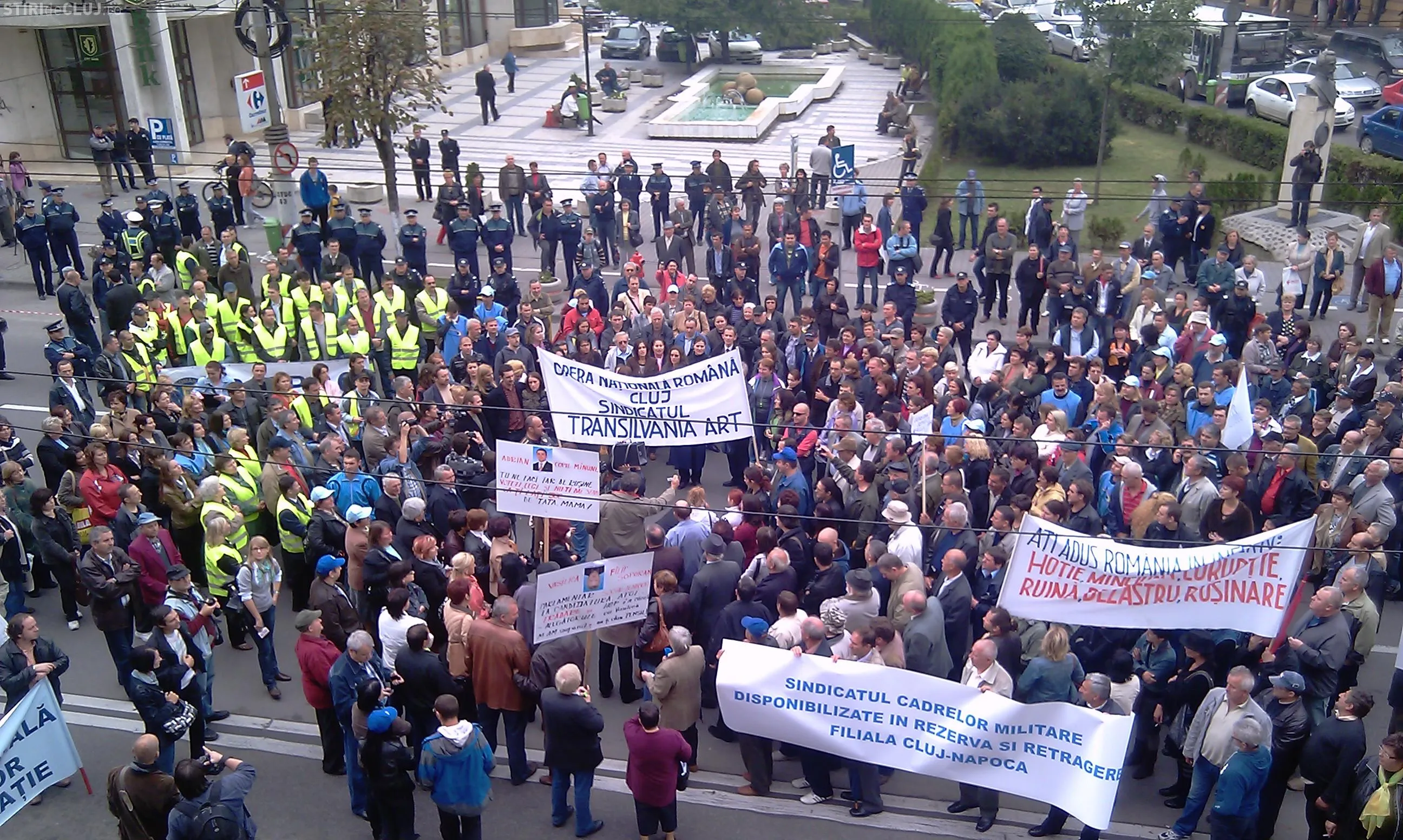 La protestul de luni au participat sindicalisti de la primariile din Dej, Gherla, de la Opera Nationala si Teatru, dar si din cadrul sindicatelor politistilor si ale cadrelor militare in rezerva. Tonul a fost dat de conducerea de la Cartel Alfa, care ii reprezinta pe majoritatea celor care au marsaluit prin centrului Clujului.