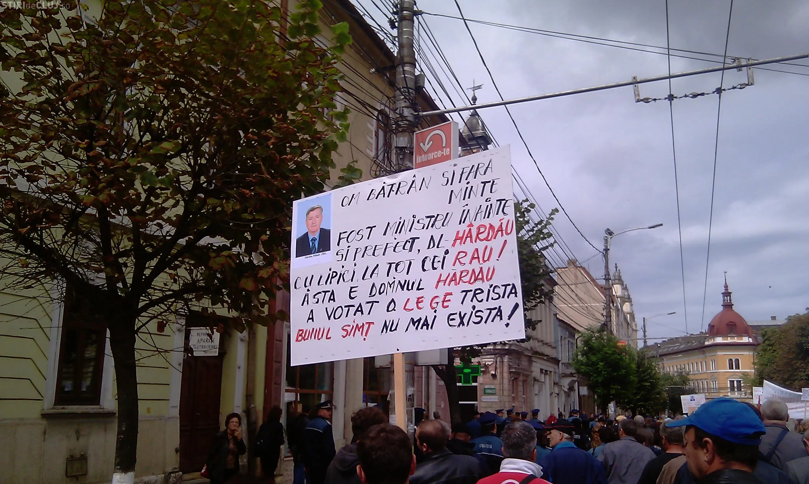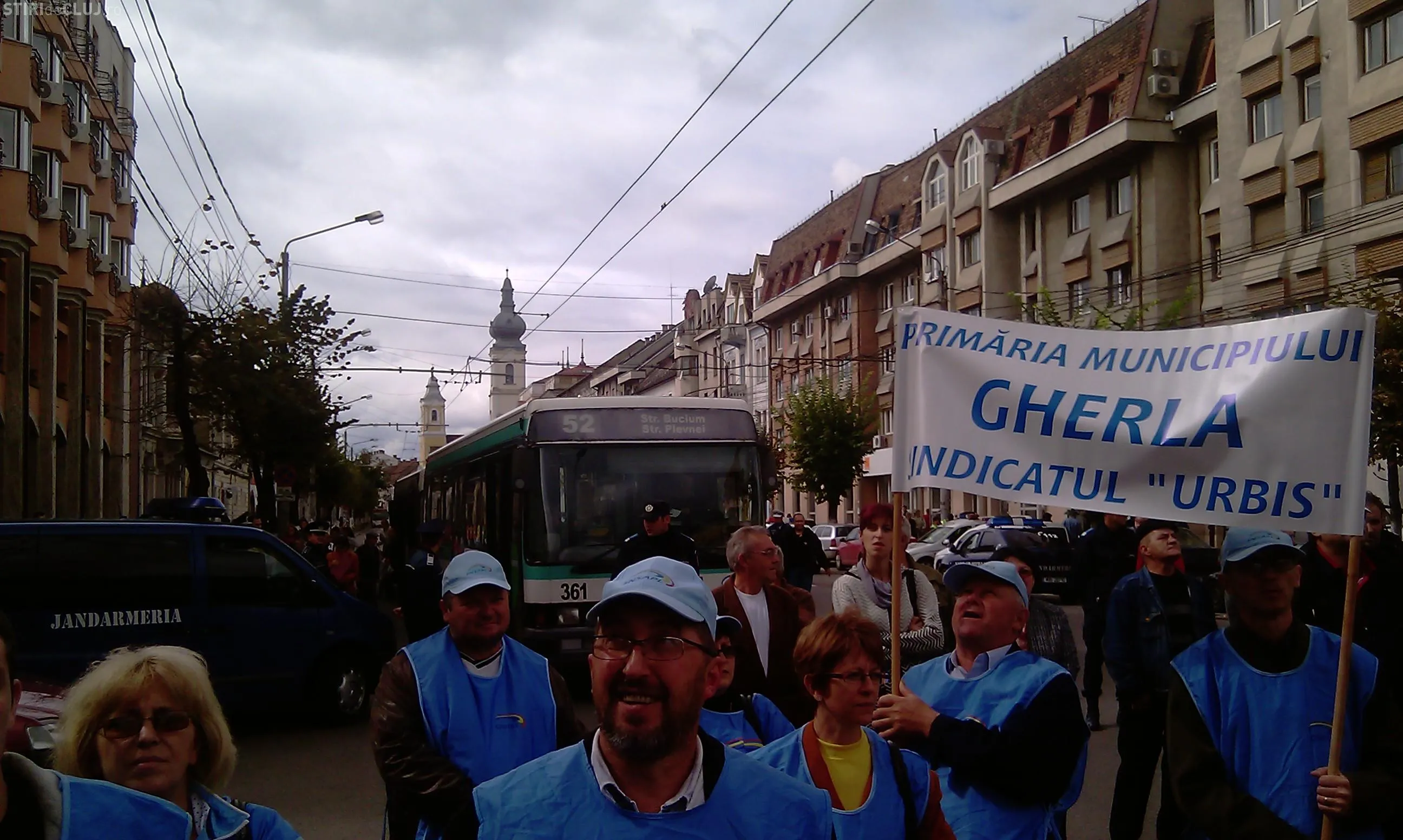 Aproape 1.000 de sindicalisti au protestat intre orele 12.00 si 14.00 in centrul orasului. Mitingul a inceput din Piata Lucian Blaga si, dupa ce au traversat orasul pe Bulevardul Eroilor, sindicalistii s-au oprit la Prefectura.