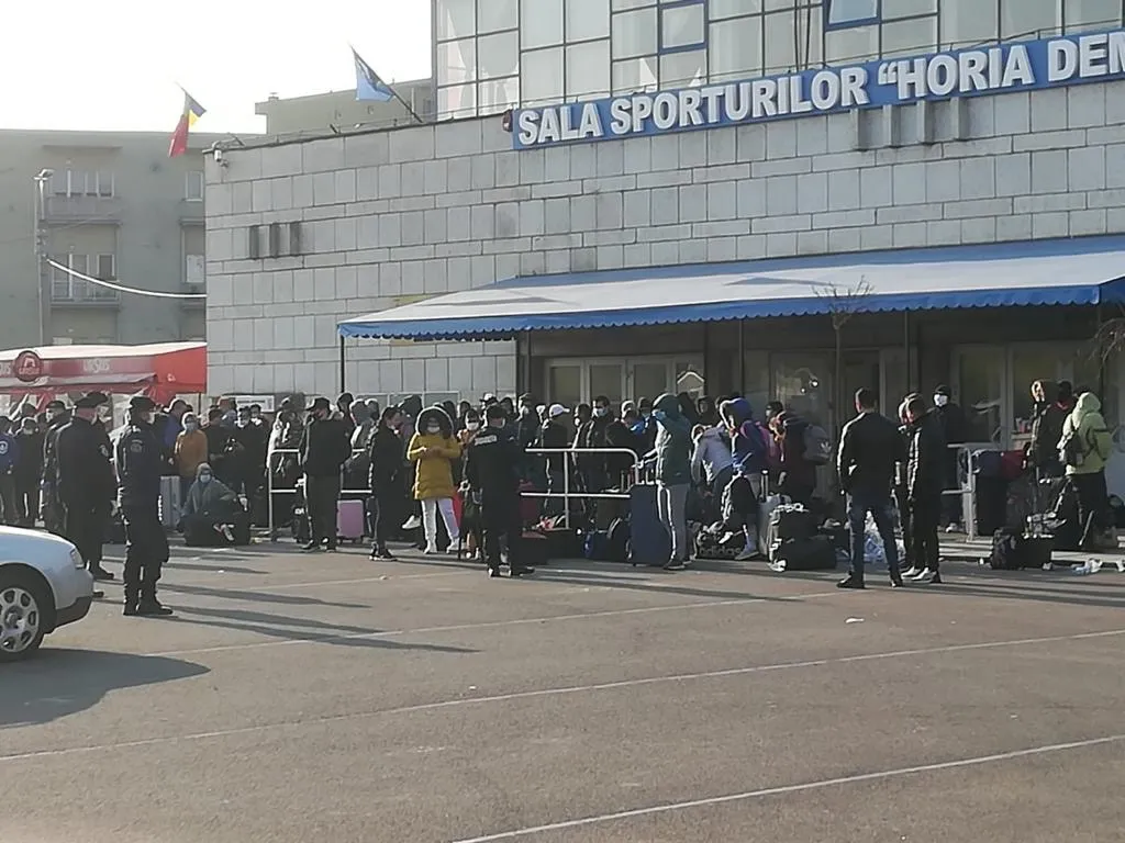 Românii ajunși pe Aeroportul Cluj din zonele roșii au fost duși la Sala Sporturilor ”Horia Demian” pentru tiere și apoi trimitere cu transporturi speciale în localitățile de domiciliu.
