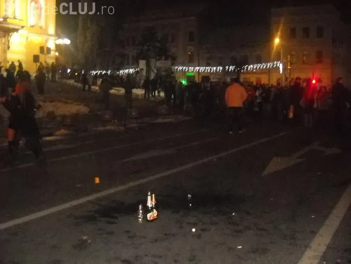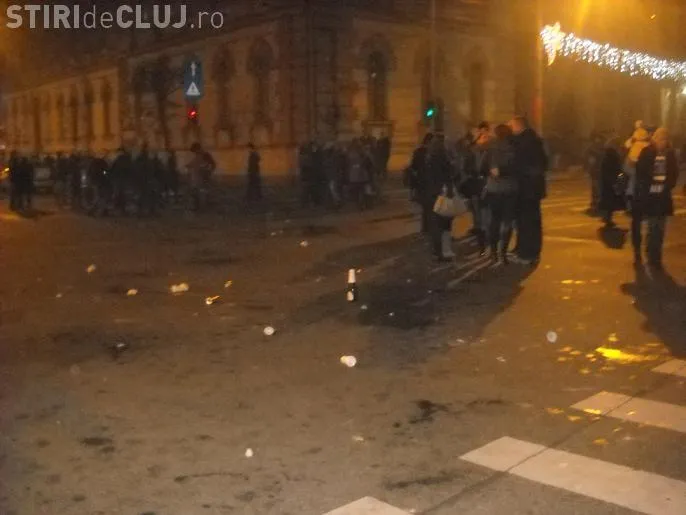 Clujenii care si-au petrecut noaptea dintre ani la artificiile din Piata Avram Iancu au lasat o mizerie de nedescris in urma lor.