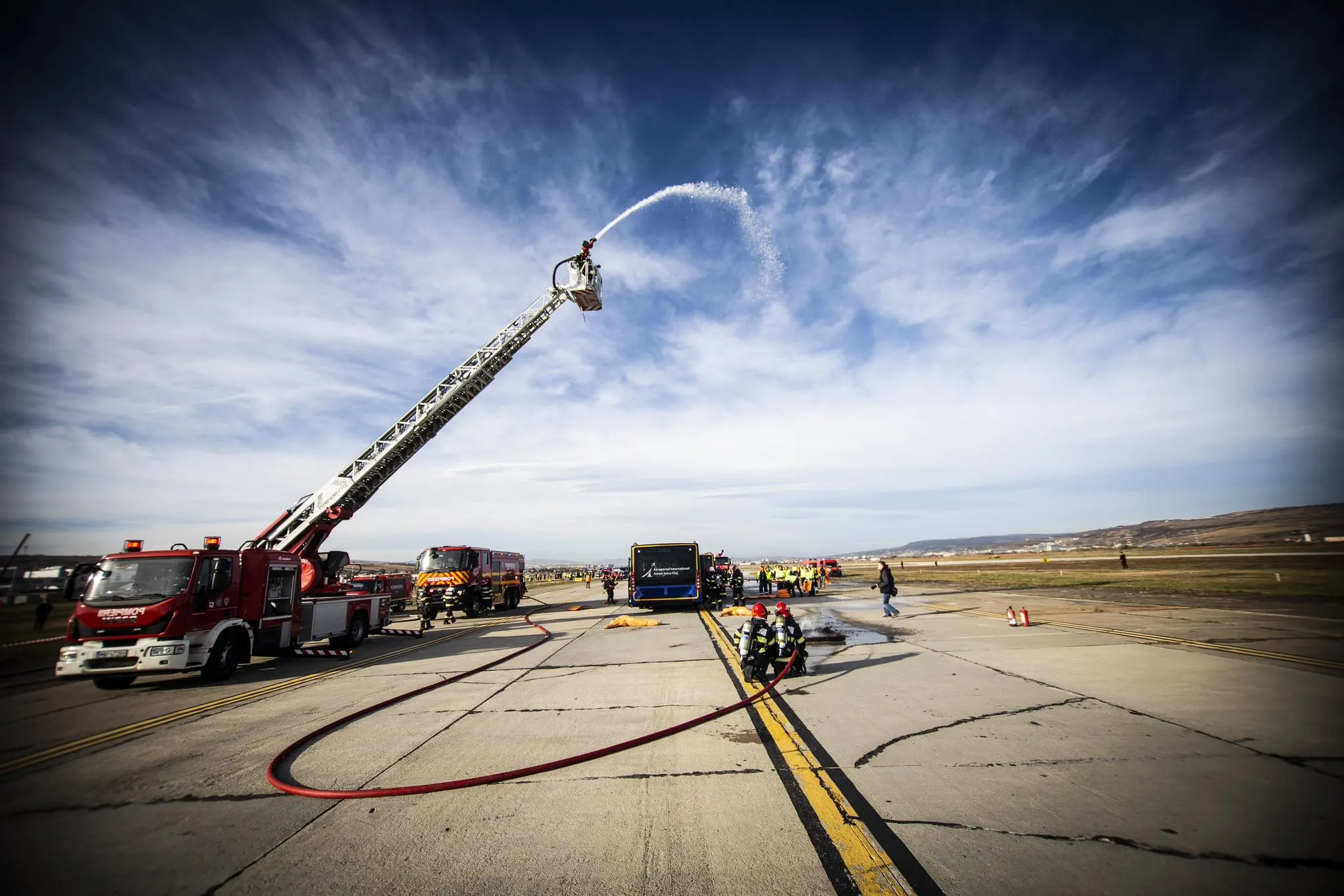 Exercițiu amplu la Aeroportul din Cluj! ISU și echipajele de urgență simulează un accident aviatic cu victime multiple