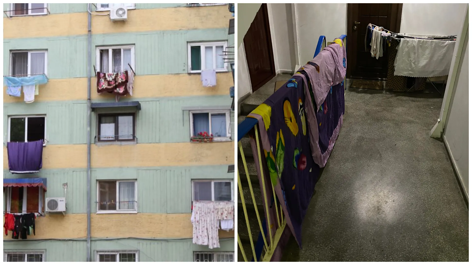 „Moda” hainelor atârnate pe balcon și în scara blocului, la Cluj: Locatarii unui bloc sunt exasperați de vecinii care „strică imaginea blocului”