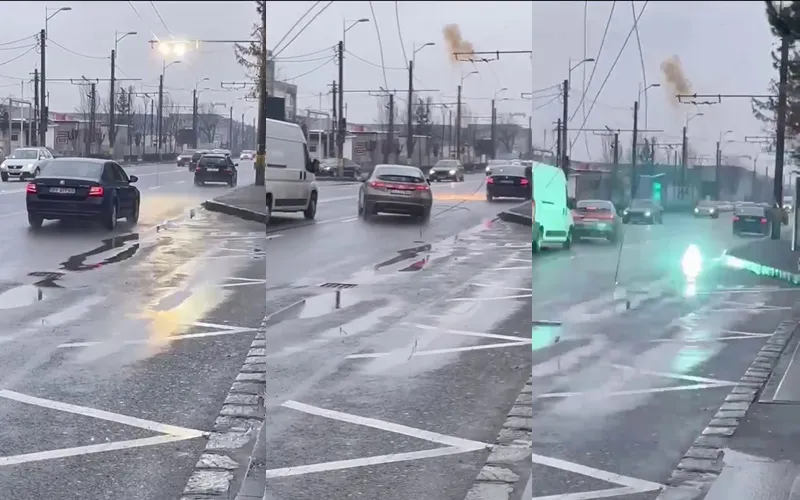 Momentul în care cablurile de troleibuz de pe Traian Vuia au făcut scurtcircuit și au căzut pe drum - VIDEO