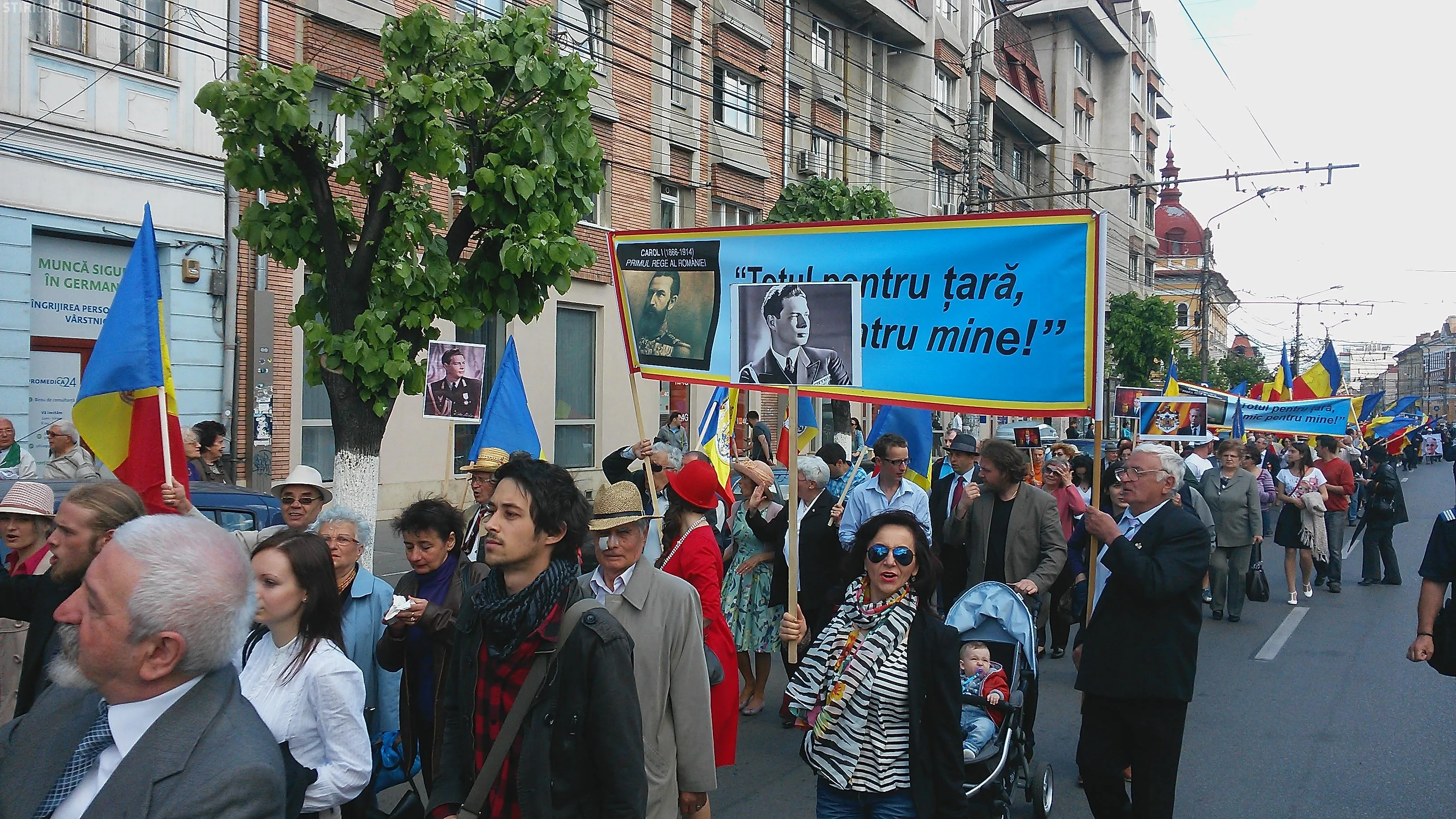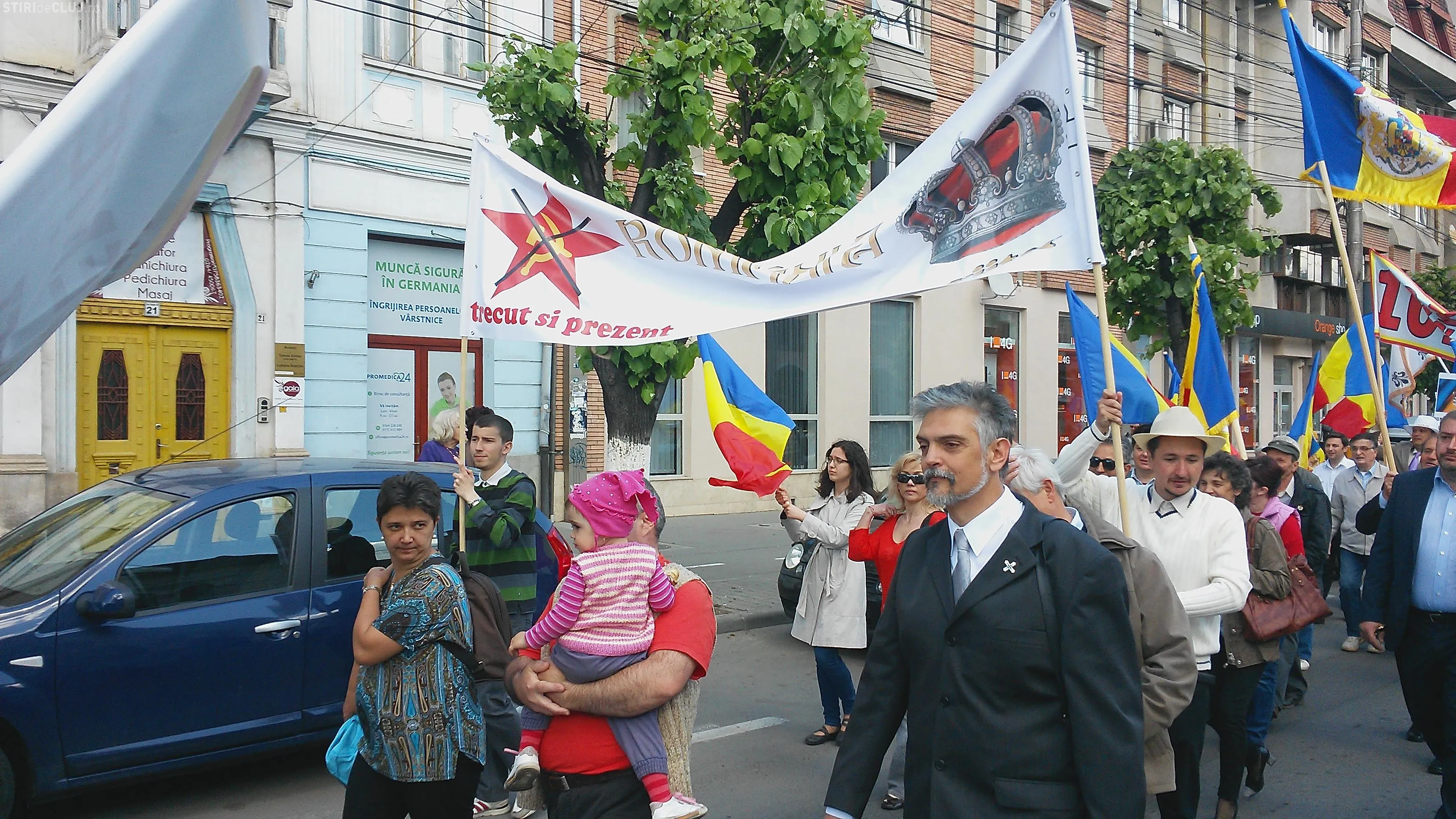 Monarhiștii clujeni au organizat sâmbătă, 10 mai, de la ora 11.30, un marș prin centrul Clujului, sub sloganul ”România, 10 mai - Ziua Independenței, Ziua Regalității”.