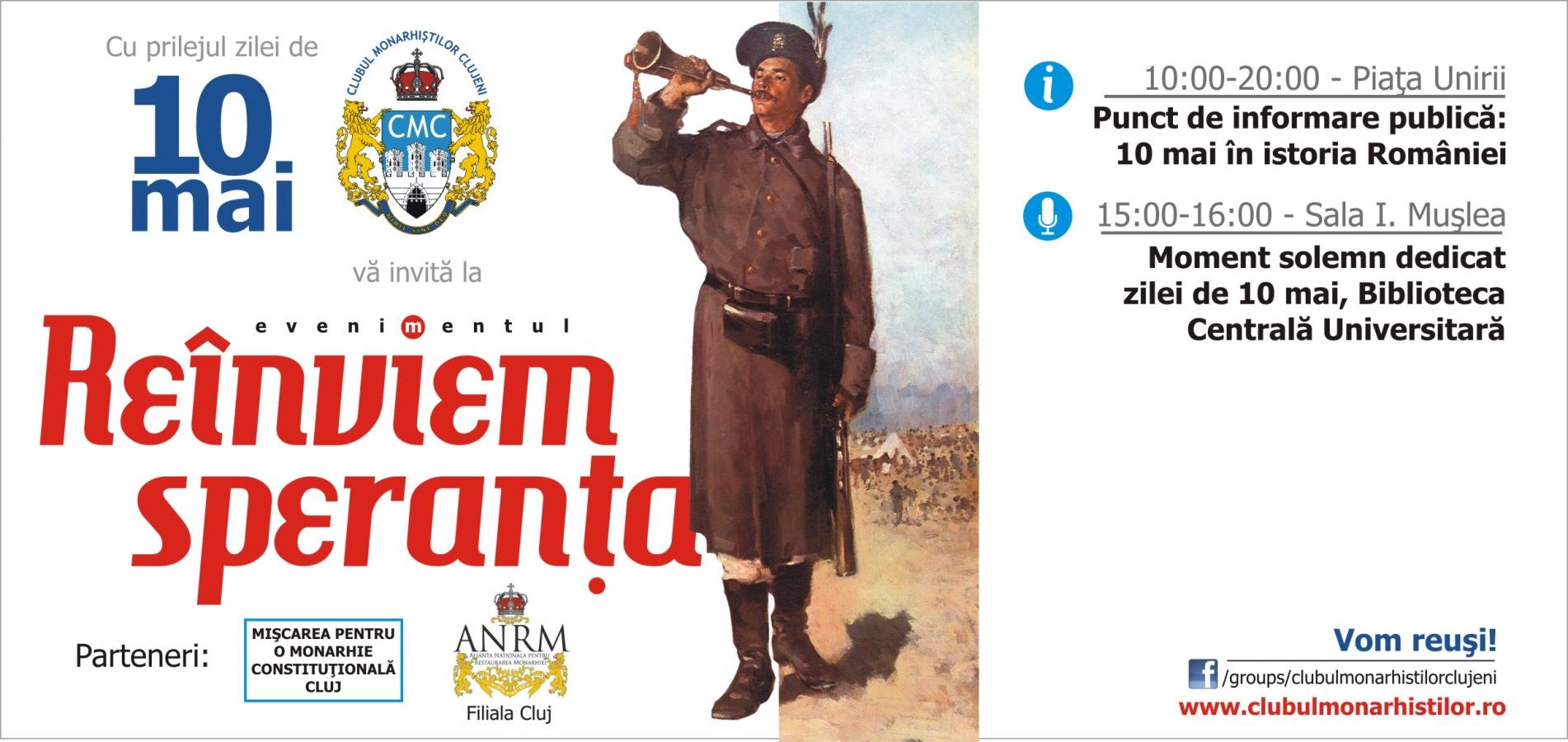 Petiția pentru susținerea acestui proiect va fi lansată în 10 mai, în Piaţa Unirii, cu ocazia evenimentului ”Reînviem speranţa”. ”10 mai - vom fi mai pregătiţi cu sufletul, mintea şi trupul ca să prelungim bucuria Învierii cu încă câteva zile, până la 10 mai, o alta zi a bucuriei pentru toţi cei ce ne numim români. Ne dorim ca prin acest eveniment, primul de acest gen desfăşurat la Cluj, să dăm posibilitatea concetăţenilor noştri să afle că actuala sărbătoare naţională a Marii Uniri de sub Regele Ferdinand I, de la 1 decembrie 1918 nu ar fi putut exista dacă, în timpul lui Carol I, Principe al României, la 10 mai 1877 nu s-ar fi proclamat independenţa ţării, iar mai apoi să devină Regat prin încoronarea lui Carol I, la 10 mai 1881”, precizează reprezentanții Clubului monarhiştilor din Cluj.