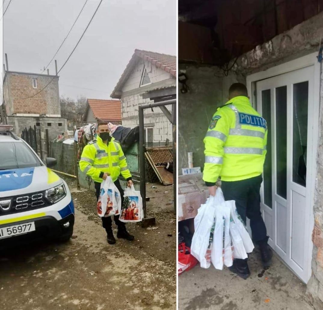 Moș Crăciun a îmbrăcat uniforma de polițist și a dus cadouri copiilor.