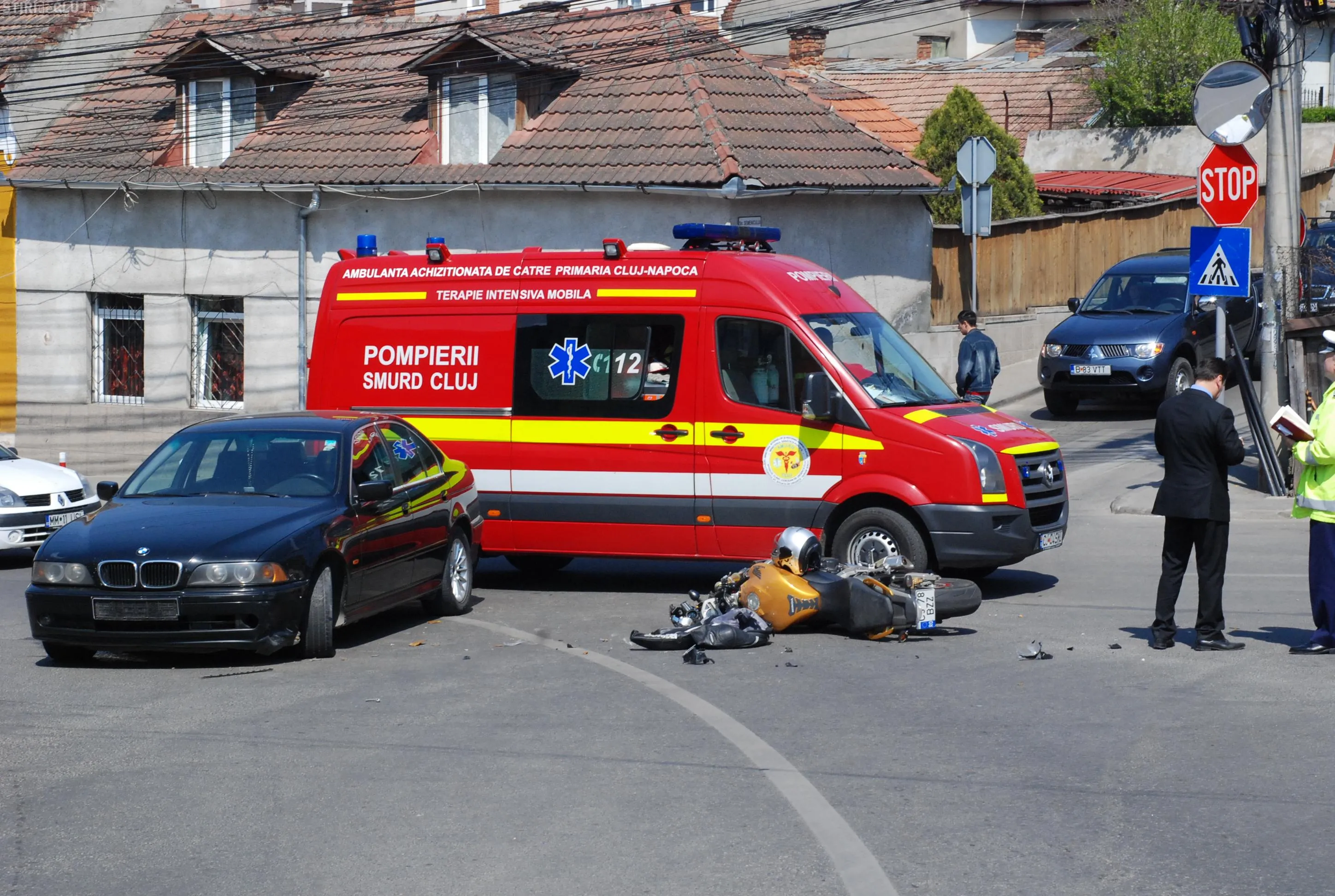 Motociclist lovit de o masina la intersectia strazilor Septimiu Albini si Semenicului VEZI FOTO