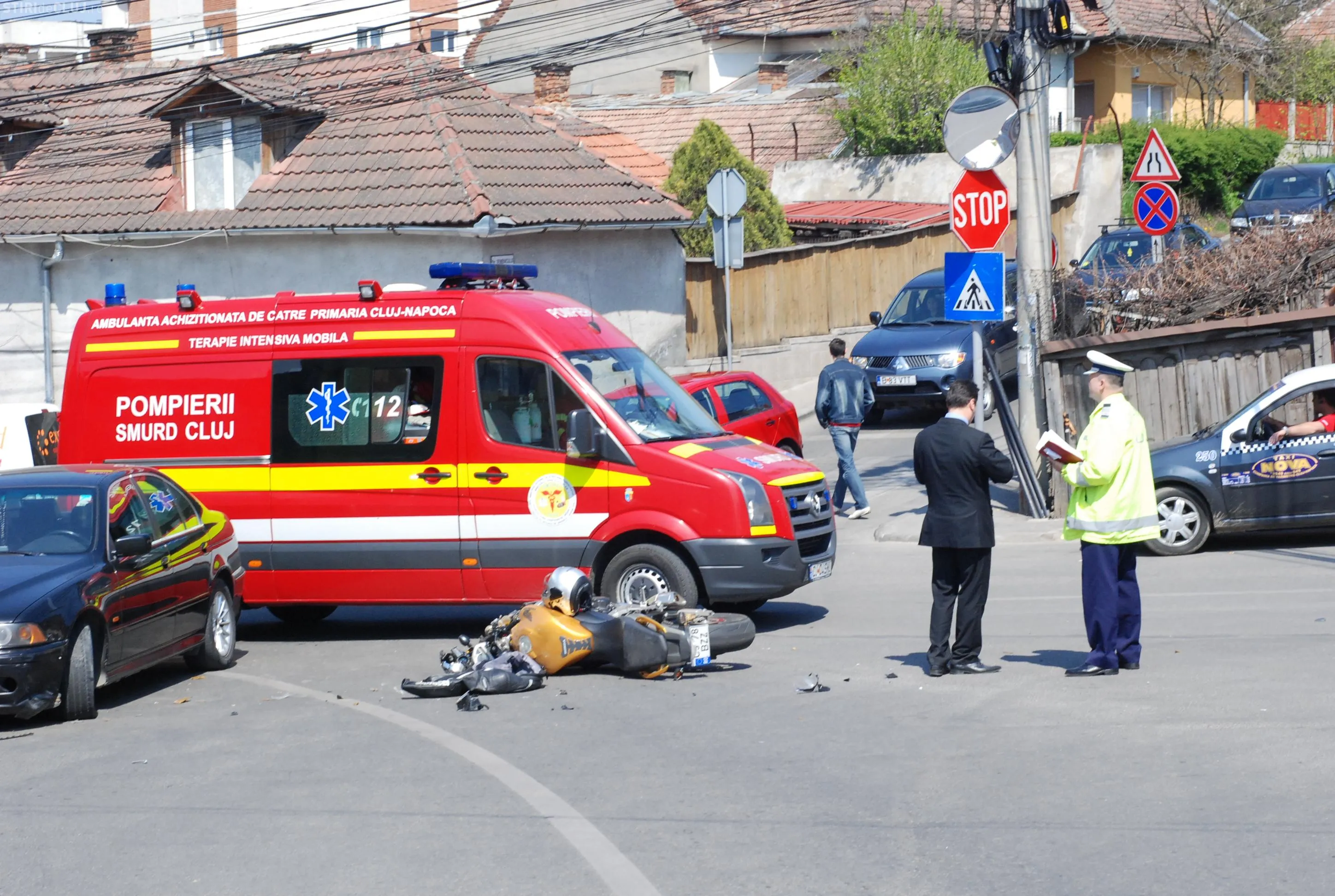 O ambulanta SMURD a intervenit la acest caz si i-a acordat ingrijiri medicale bikerului.
