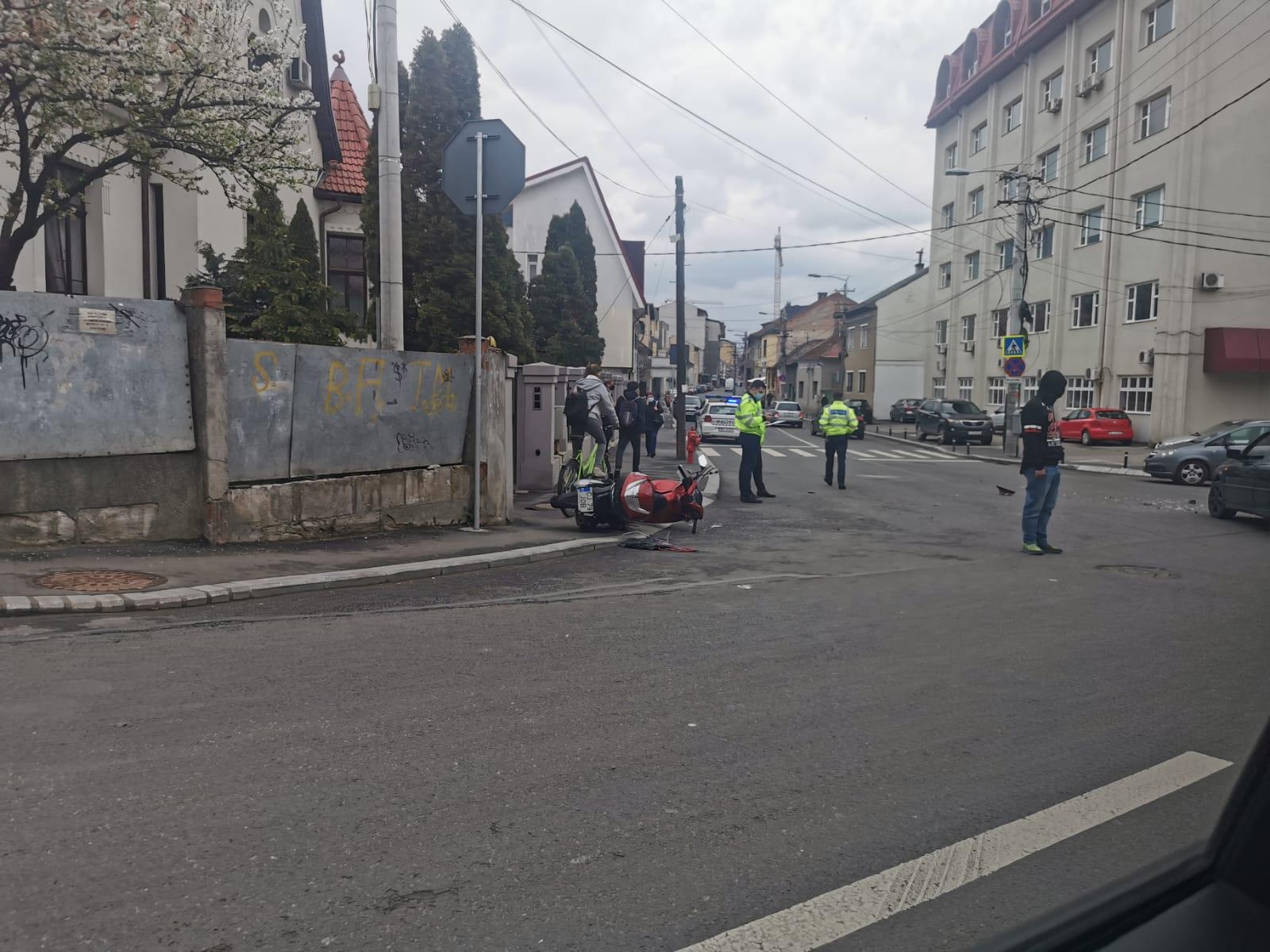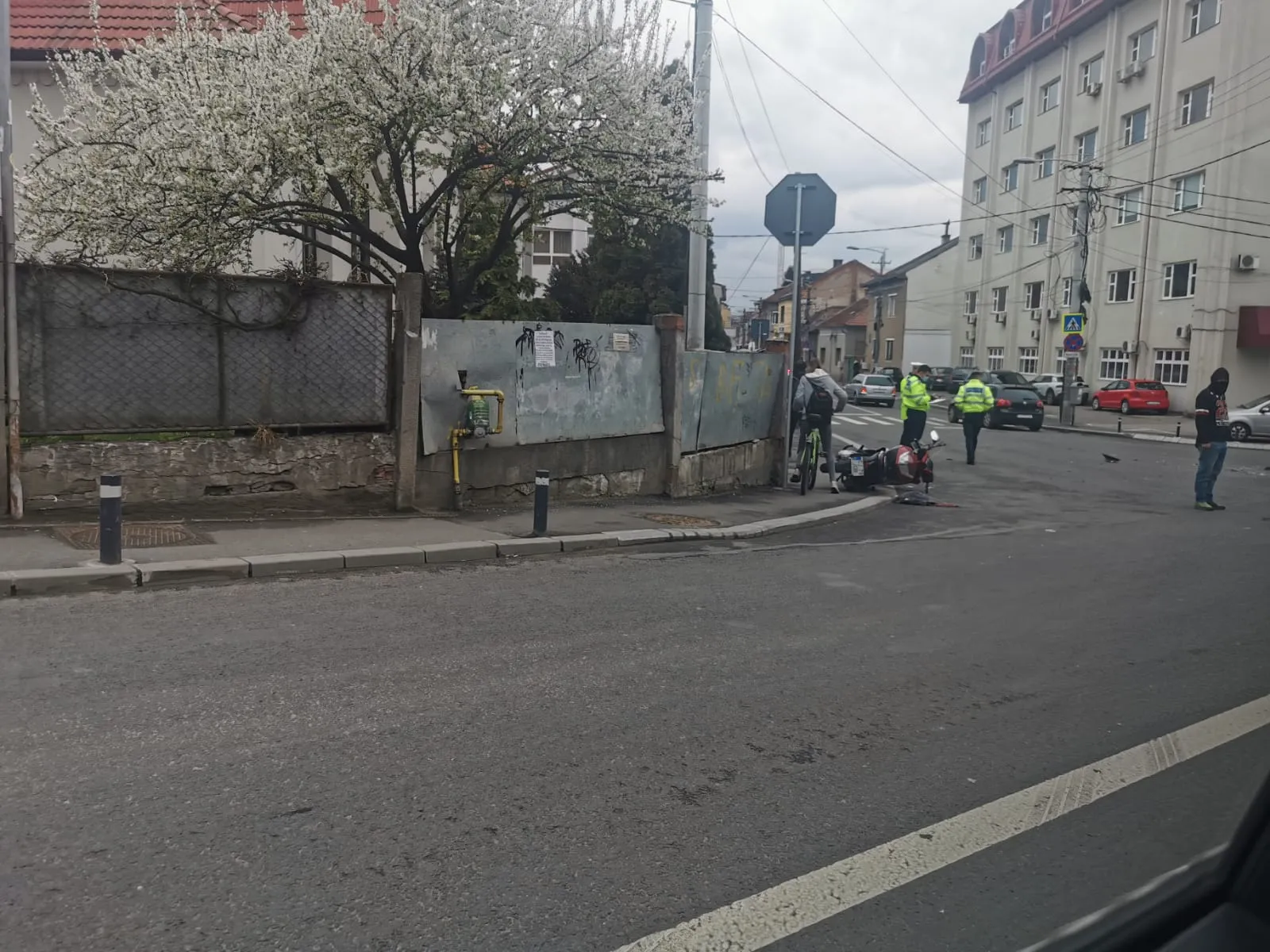 Un motociclist a fost lovit de un autoturism la intersecția Aurel Suciu cu Traian Mosoiu.