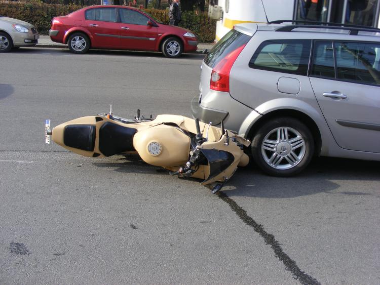 Un motociclist care circula pe Bulevardul Eroilor a fost accidentat in jurul orei 13.30 de un autoturism care iesea din curtea PDL.