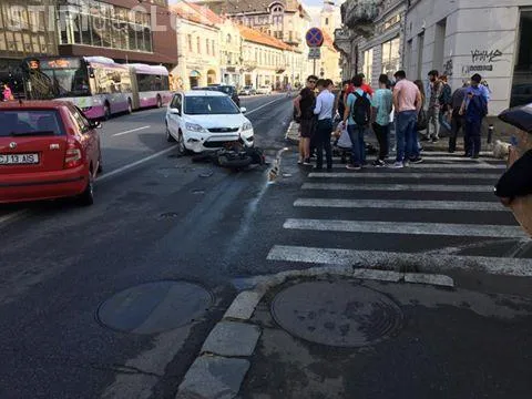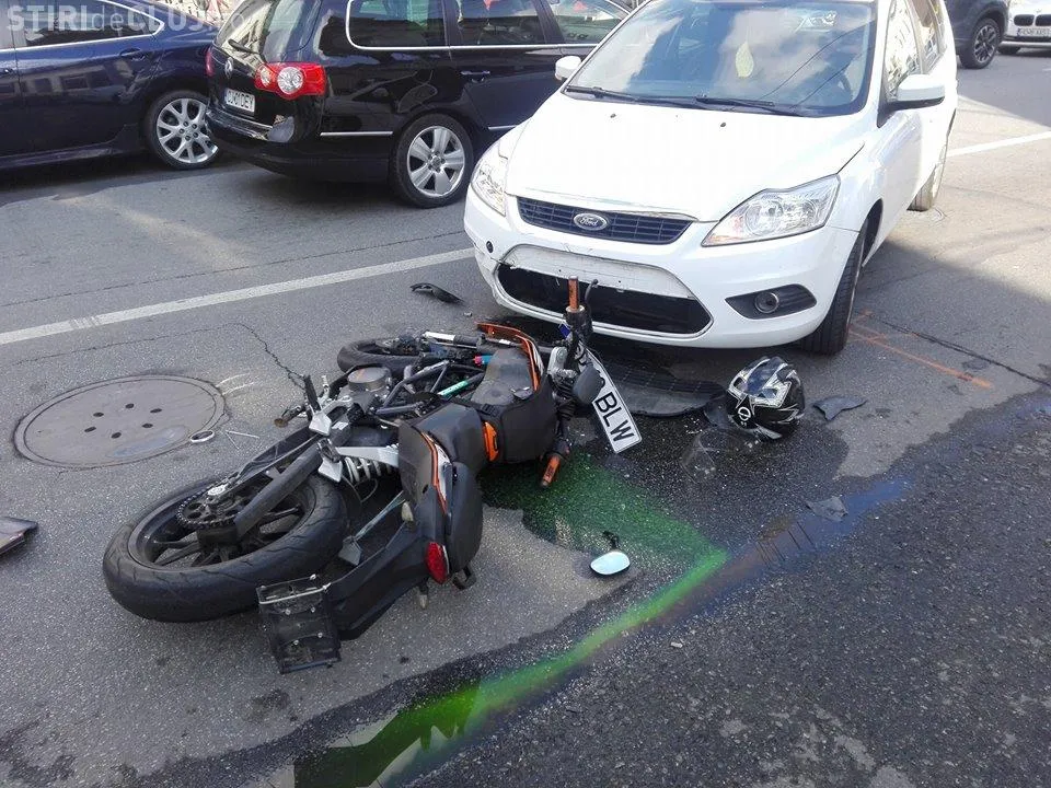 Motociclist rănit grav în centrul Clujului! O șoferiță l-a lovit în plin, în timpul unei manevre neregulamentare FOTO