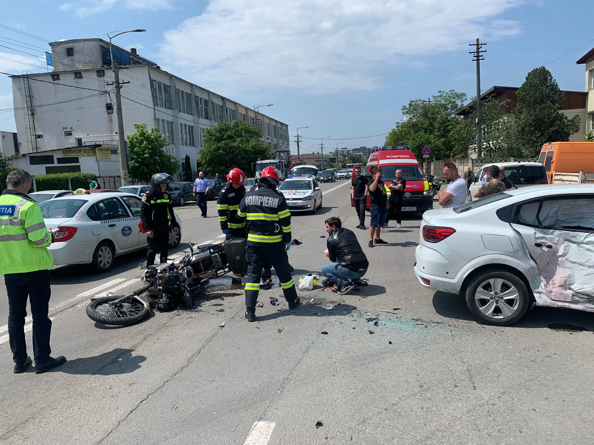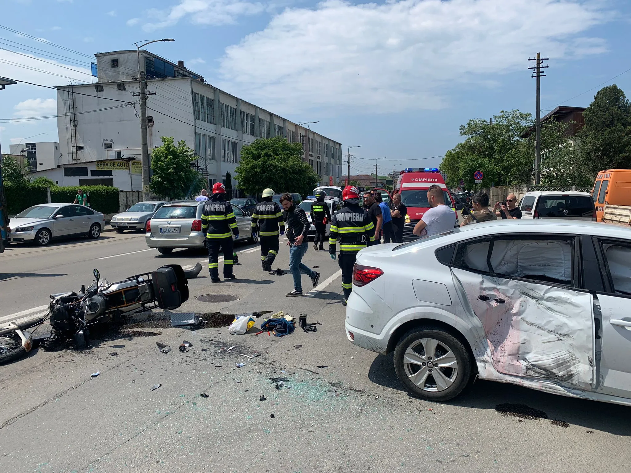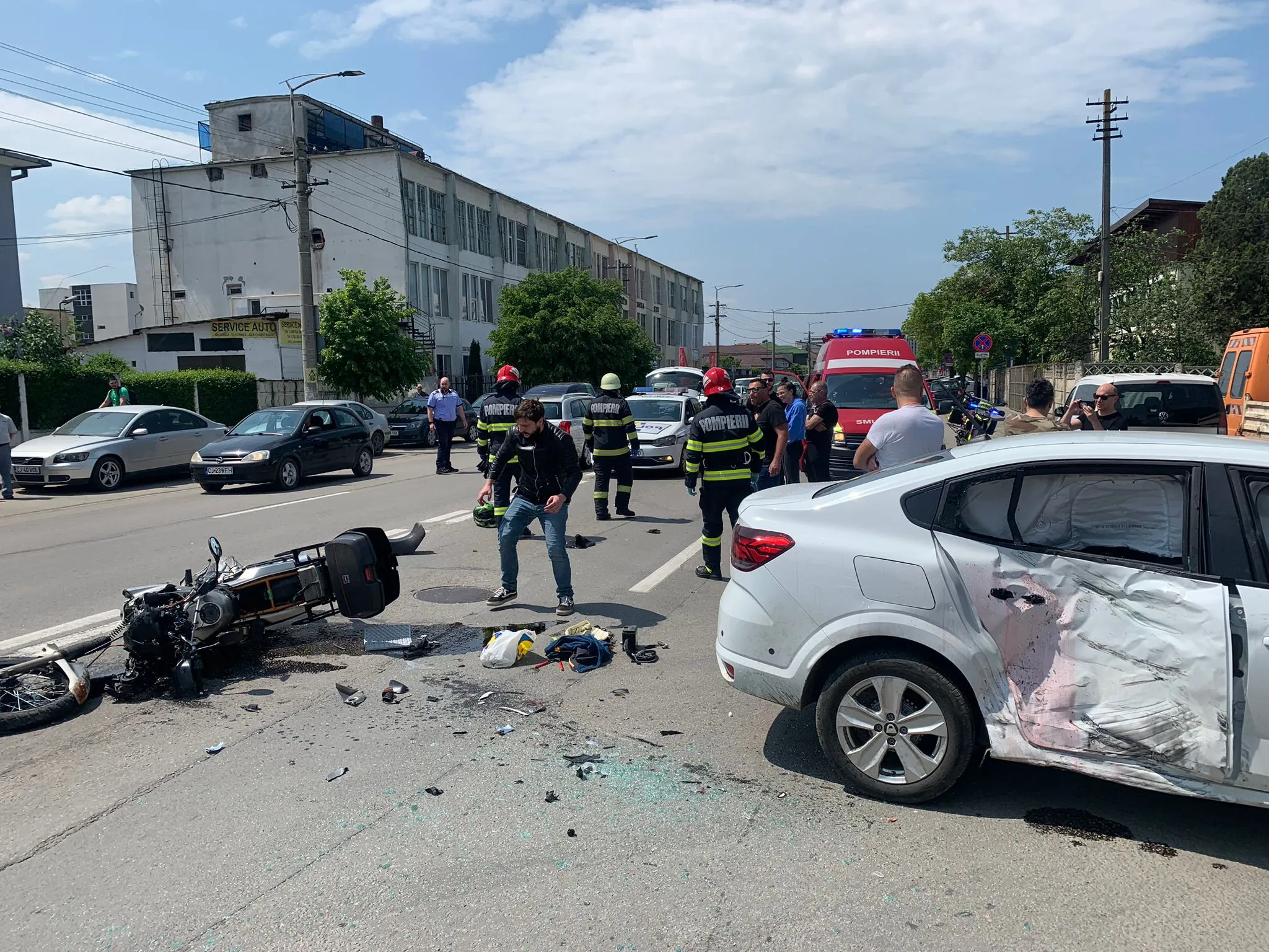 Un motociclist a intrat într-un autoturism pe strada Câmpina, din Cluj-Napoca. Accidentul s-a produs sâmbătă, 20 mai, în jurul orei 13.00.