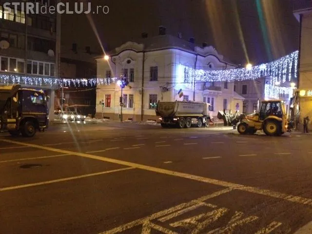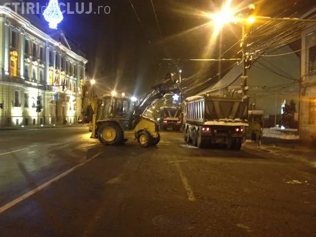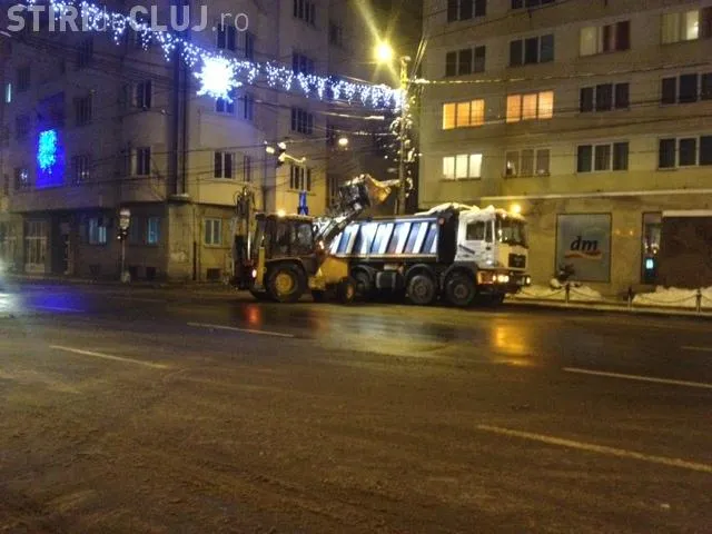 Rosal Cluj lucrează non-stop pentru a ridica de pe străzi ”munții” de zăpadă apăruți în urma deszăpezirii.