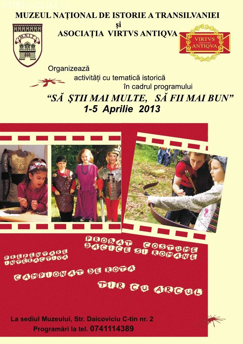 Muzeul Naţional de Istorie a Transilvaniei din Cluj-Napoca în parteneriat cu Asociaţia Virtvs Antiqva, organizează o serie de activităţi tematice cu caracter istoric, care se vor desfăşura în cadrul programului ”Să ştii mai multe, să fii mai bun”.
