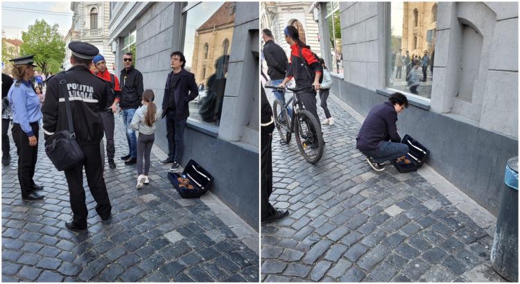 Muzician gonit din centrul Clujului de doi polițiști locali: ”Tristă țară în care trăim!” - FOTO