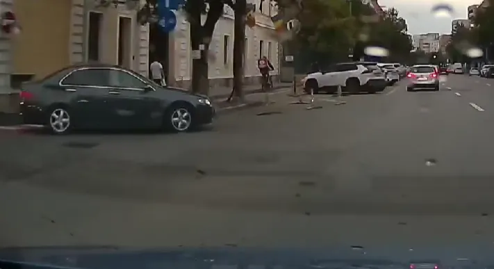 Camera de bord a surprins momentul în care autoturismul îi taie calea, continuându-și drumul de parcă nimic nu s-a întâmplat. Filmulețul a fost publicat pe o rețea de socializare pentru a atrage atenția asupra evenimentelor de acest gen.
