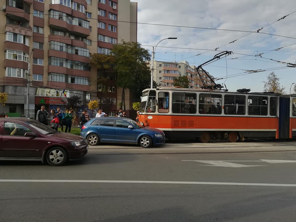 Neatenția costă! Accident între un Audi și un tramvai, în Mănăștur FOTO