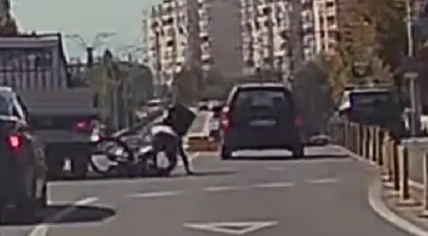 Din fericire, acesta nu a fost rănit și s-a ridicat rapid de pe jos, reluându-și drumul fără probleme. Camera de bord a unui participant la trafic a surprins momentul în care biciclistul cade pe jos și a publicat filmulețul pe o rețea de socializare, pentru a atrage atenția asupra evenimentelor de acest gen.