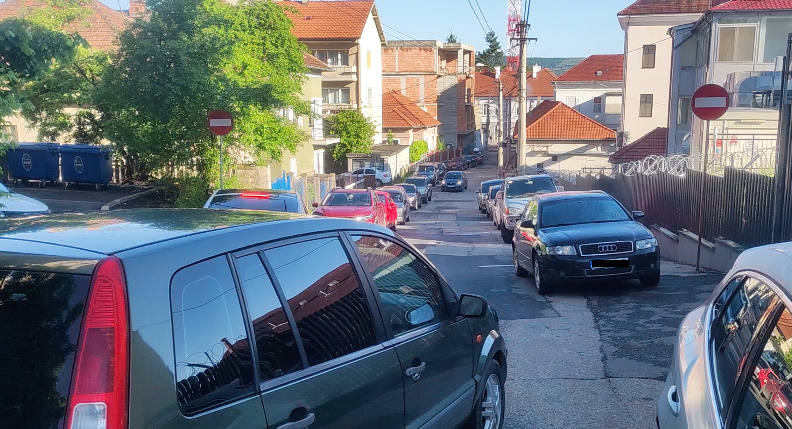 Două autoturisme au fost filmate în timp ce intrau pe o stradă cu acces interzis, pe strada Vasile Braniște din Cluj-Napoca.