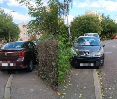 „Sunt conștientă că nu sunt suficiente locuri de parcare, dar și dumneavoastră ar trebui să fiți conștienți când parcați pe trotuar. Vă rog respectuos ca data viitoare, dacă mai parcați pe trotuar, să ne lăsați și nouă, pietonilor, loc să mergem. Din cauza a două autoturisme parcate pe trotuar am fost nevoită să merg cu copilul pe stradă și chiar nu mi se pare normal acest lucru”, a scris clujeanca.