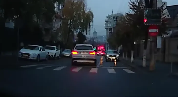 ,,Tactică nouă pe str. Andrei Mureșanu”, a scris șoferul care a surprins evenimentul rutier și pe care l-a publicat pe o rețea de socializare.