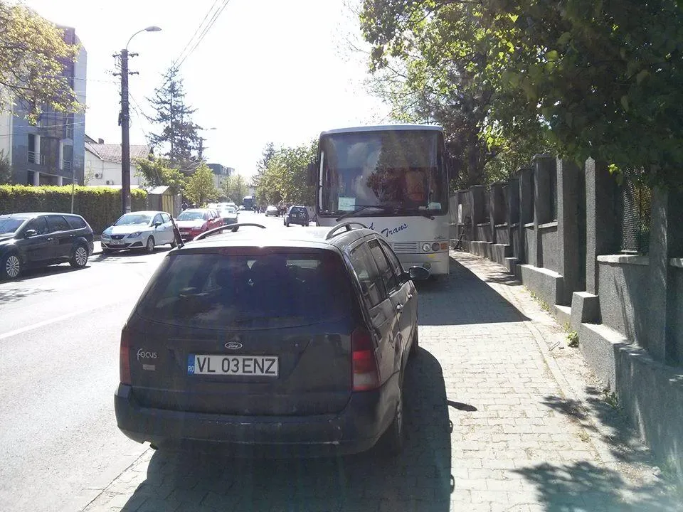 ”Povestea umilintei si inabilitatii autoritatilor locale continua. Povestea de acum cateva zile se repeta. Imi iau si eu ca tot omul pauza de masa si surpriza, pe trotuar din nou un autocar parcat, de data asta cei de la Vlad Trans ma onoreaza cu prezenta. Patit de zilele trecute, fac prima data poze si de data aceasta sun (vreo jumatate de ora) la Politia Locala inainte de a initia orice fel de contact. Nume, numar de telefon si adresa, si astept.